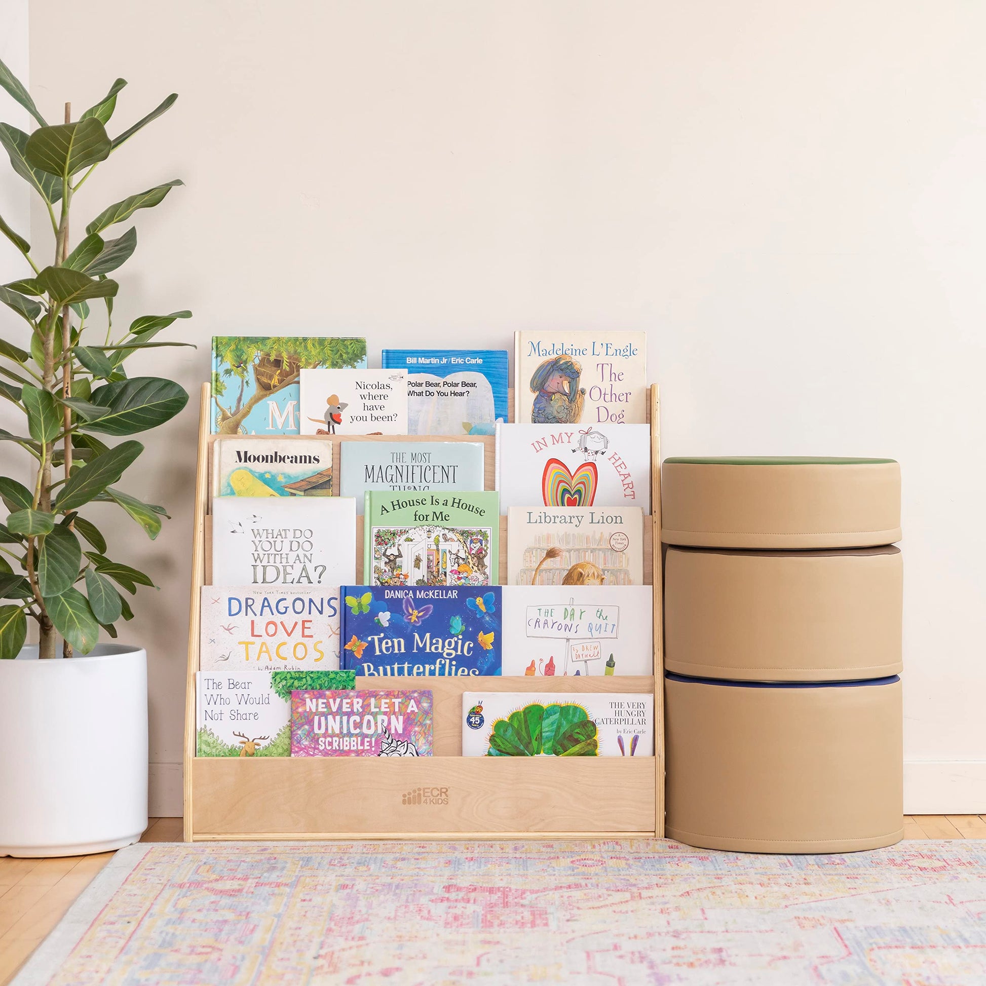 - Early Reading: The forward-facing bookcase is just the right size to let children see the cover of each book, prompting them to pick up a story and read; shelves on the back provide additional storage