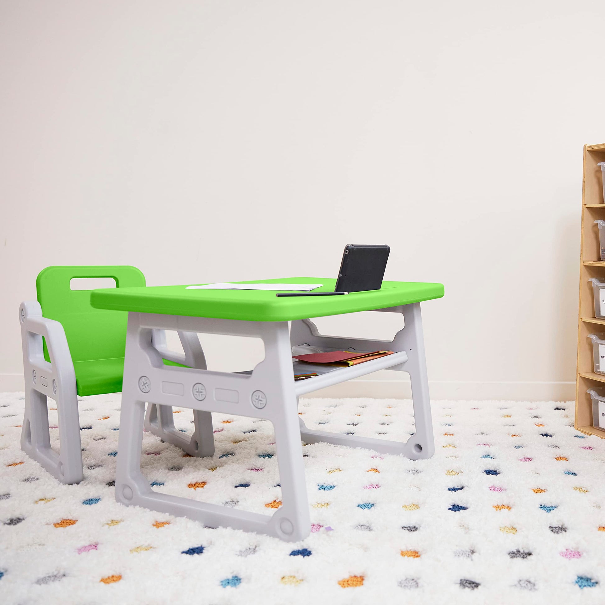 Toddler Plus Desk and Chair, Kids Furniture, Grassy Green/Light Grey
