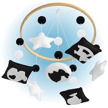 - VISUAL STIMULATION FOR BABY 0-5 MONTHS - Introduces baby to high contrast images and colors for early visual development with a hanging mobile over little one's crib. The baby crib toys that attach to the crib are high contrast baby toys with 5 different animals (Elephant, Whale, Horse, Duck and Rabbit) which give visual stimulation to engage your baby.