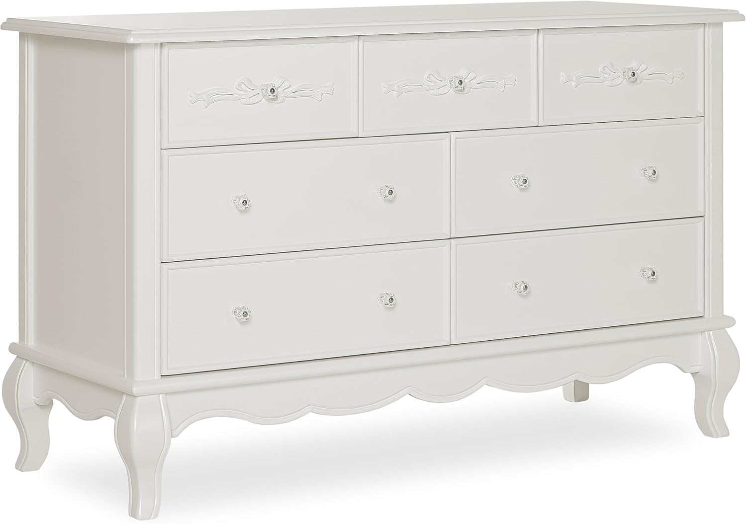 - Spacious Double Dresser – 7 deep drawers with crystal knobs & soft carvings; comes fully assembled with anti-tip kit.