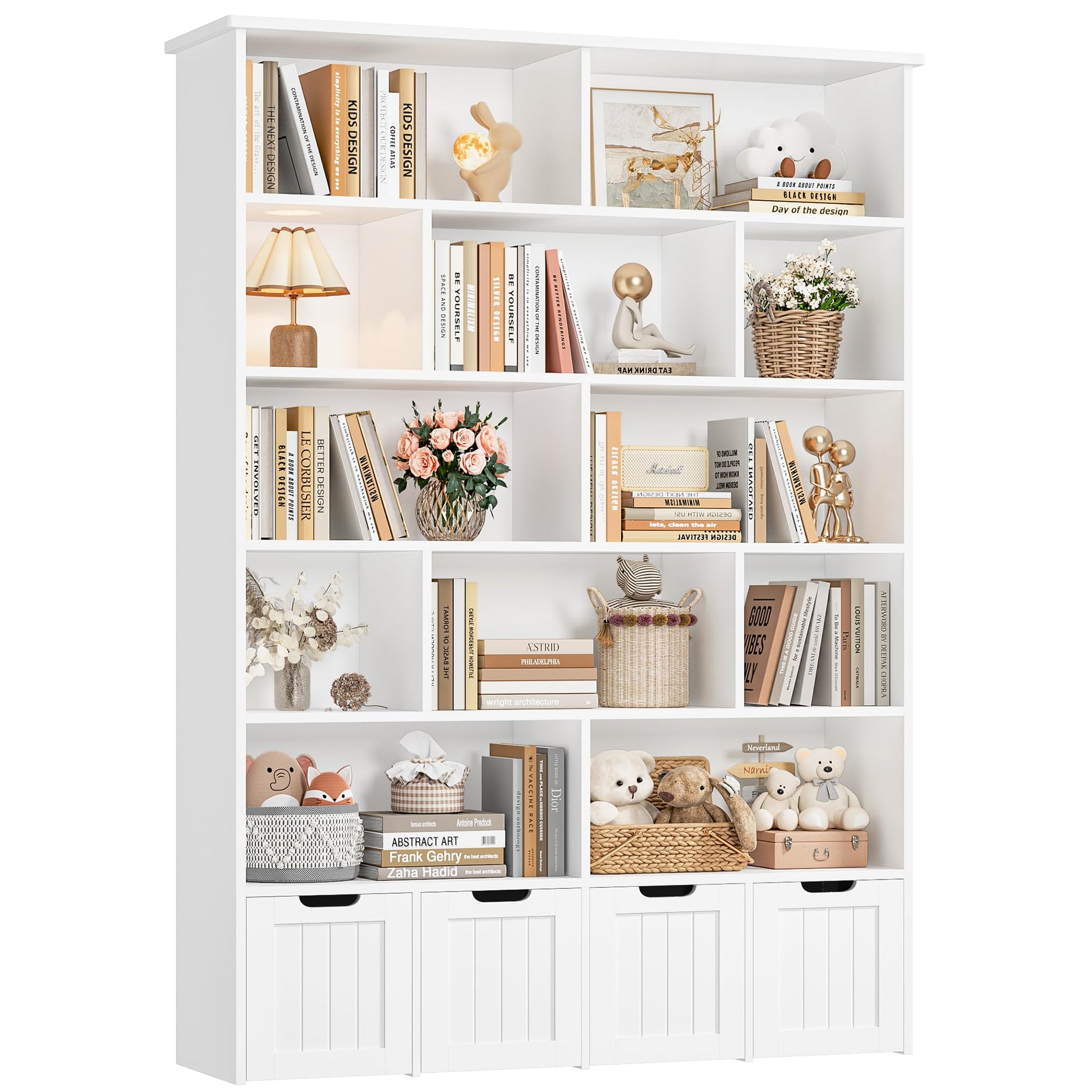 69" H Toy Storage Organizer, 6 Tier Tall Kids Bookshelf with 4 Movable Drawers