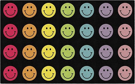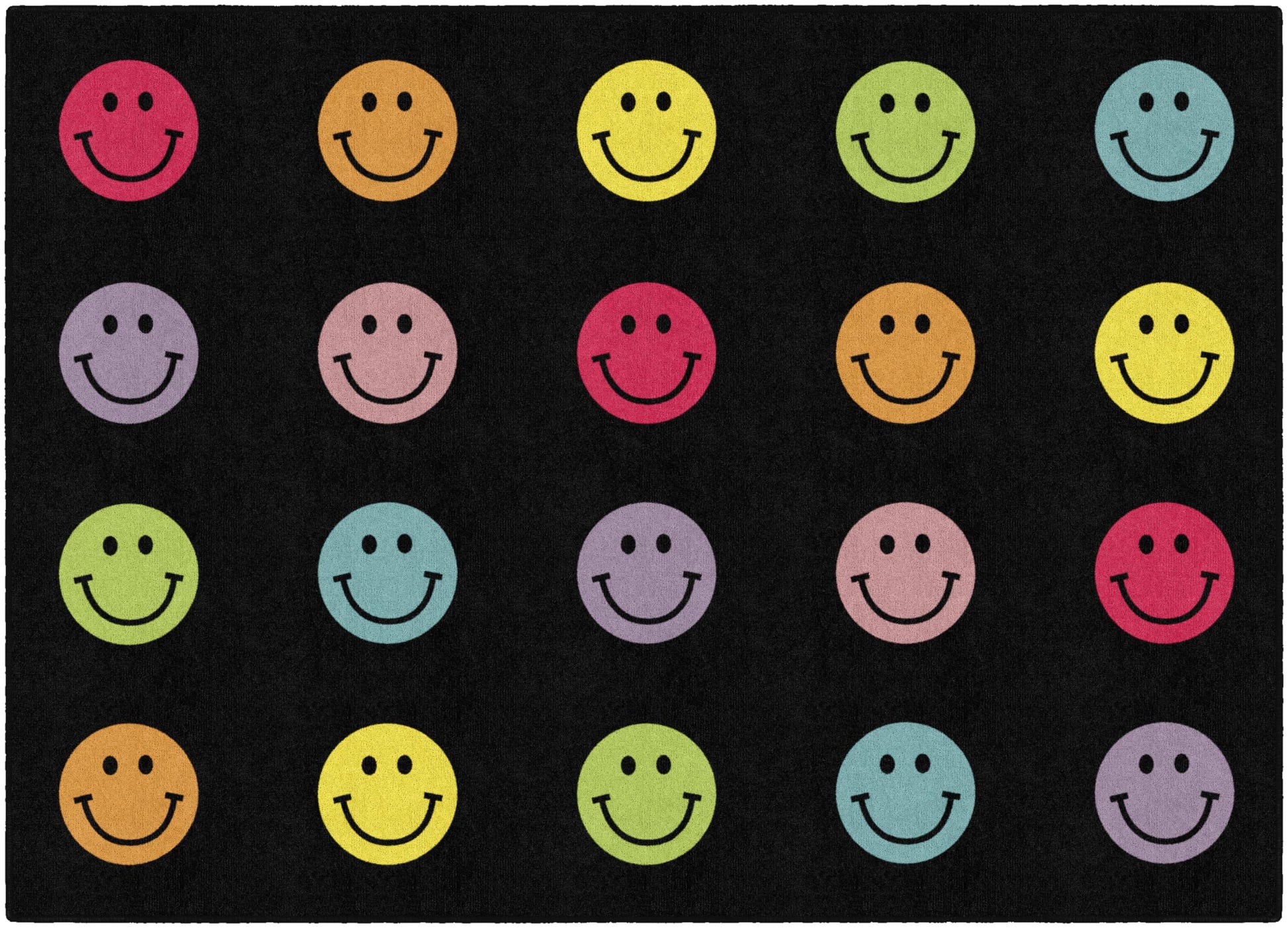 Schoolgirl Style Rainbow Smileys in Black Criss-Cross Applesauce Educational Area Rug