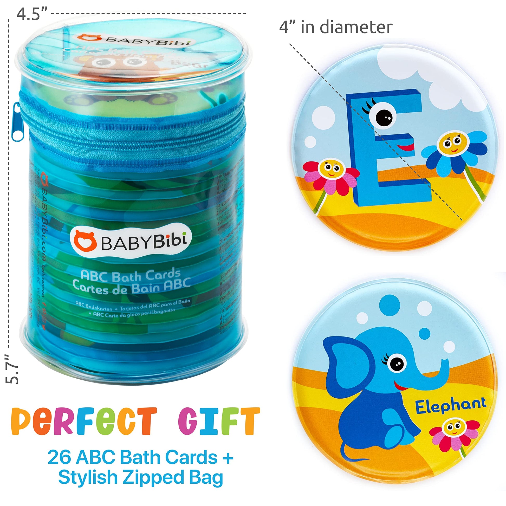 - PRESCHOOL LEARNING - Choose to learn english alphabet, animal names or both while playing in the bath with these abc flash cards! Each card showcases a letter with a corresponding animal character on the back. Set included 26 round bath cards.