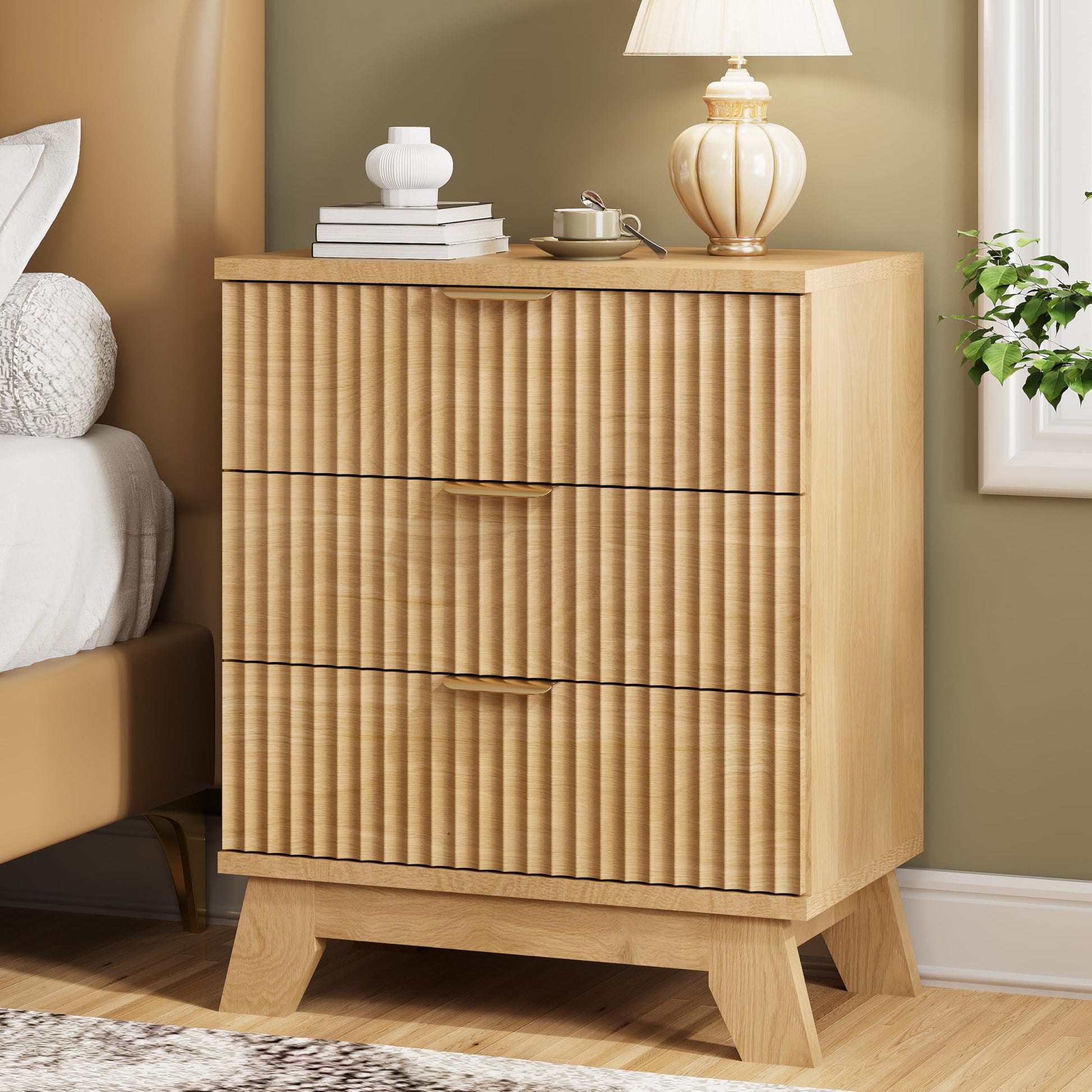Fluted Nightstand, 24" Wide Side Table with 3 Large Storage