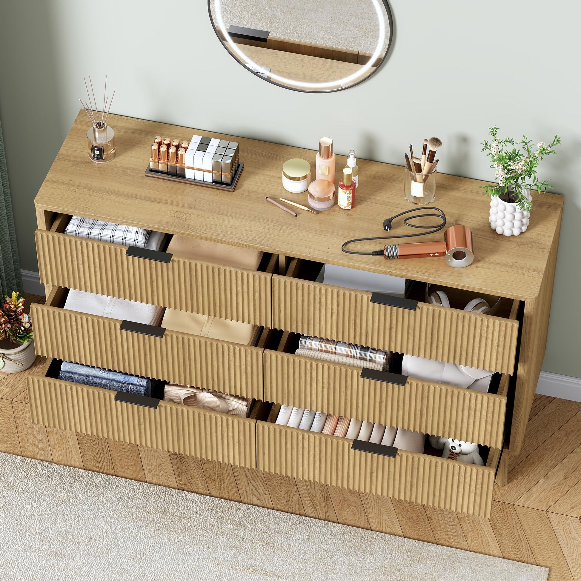 Fluted 6 Drawers Dresser for Bedroom, Wide Modern Chest