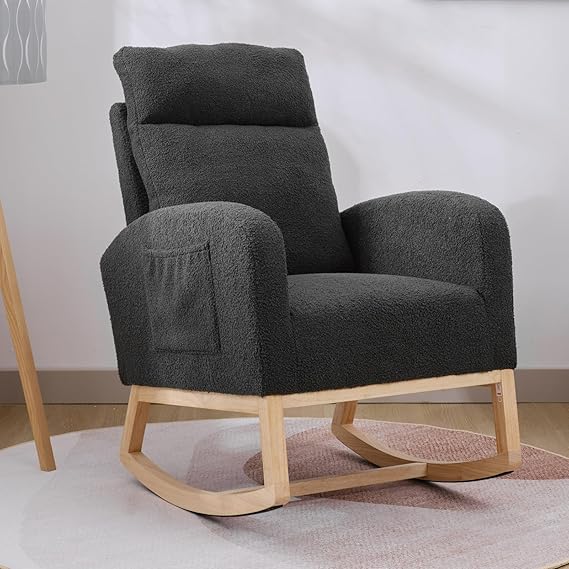 - Wrapped in skin-friendly velvet fabric, the glider rocking chair boasts a premium surface, while the seat is filled with high-density foam for a soft and cushioned feel. Experience both comfort and elasticity in one.