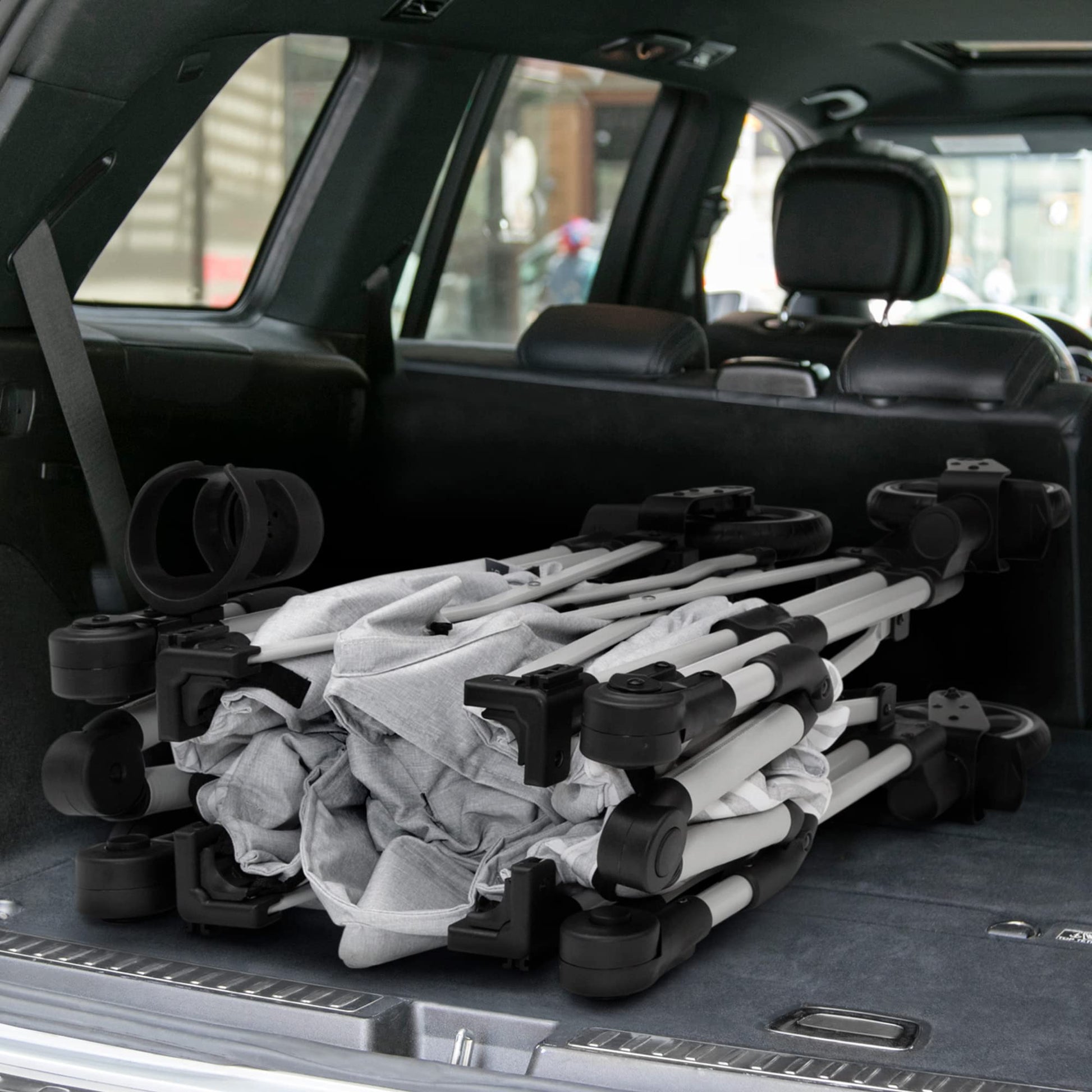 - TONS OF STORAGE: Removable center console has 2 cup holders and storage pocket | Outside pockets and parent cup holder provides additional storage | Size: 24”W x 51.2"D x 46"H; Folded dim: 12.6”W x 16.9"D x 31.5"H | Weighs 38 lbs.