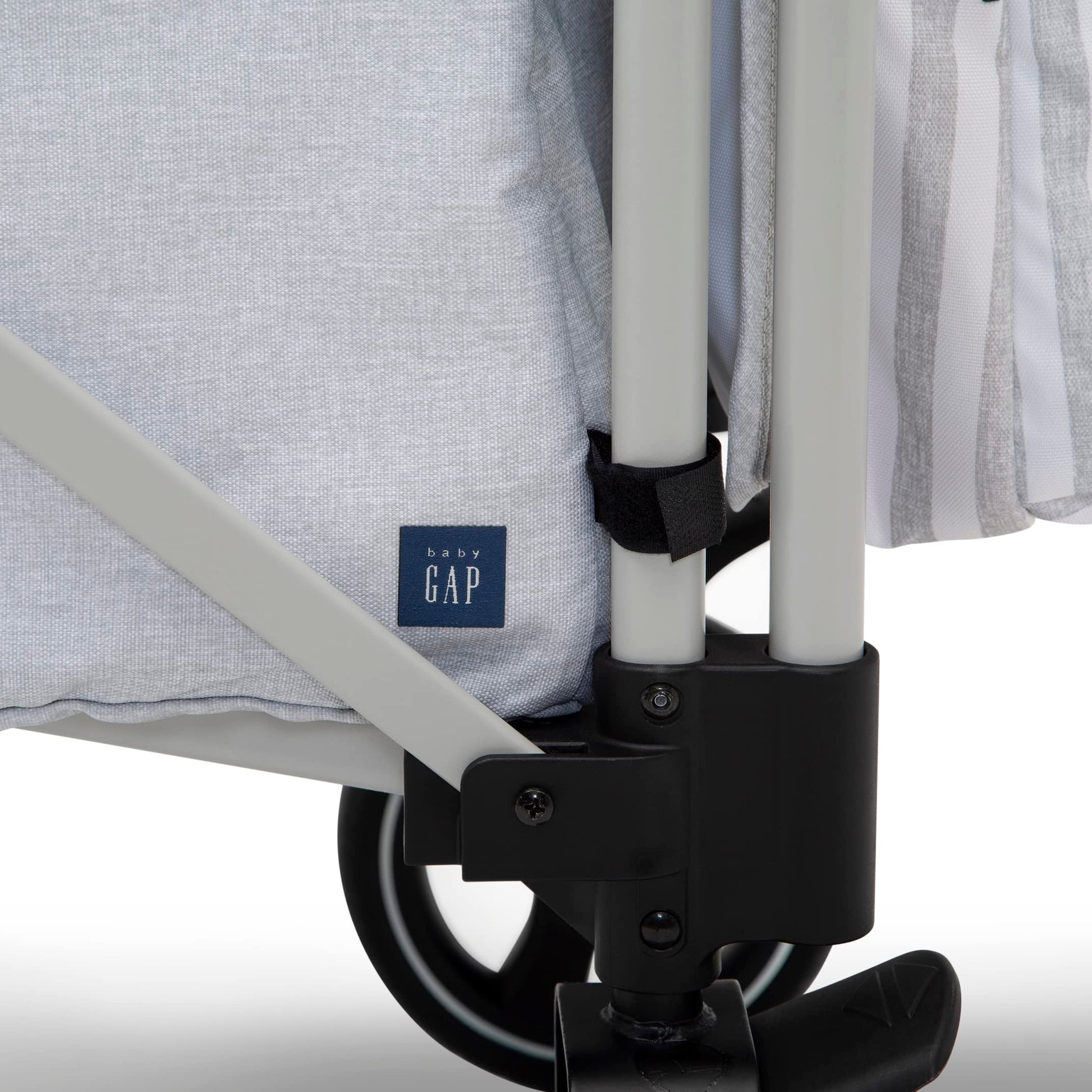 - UNIQUELY GAP BABY: babyGap logos and iconic Brannan Bear create an elevated look | Removable UV blocking canopy, solid and mesh roll-down shades offer privacy/protect kids from the sun/rain | Durable rust-resistant steel frame | Leatherette handles