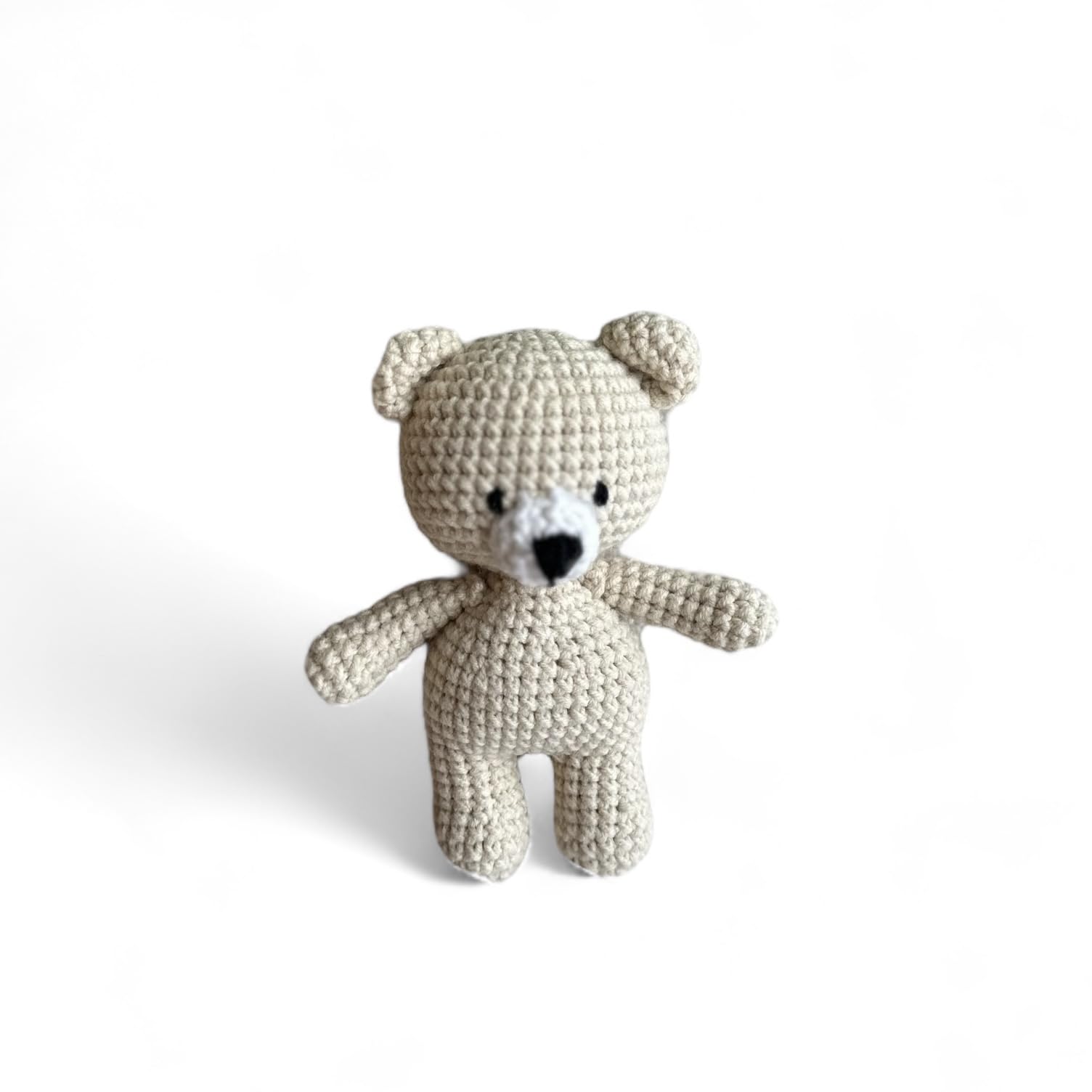 Organic Cotton Handmade Crotchet Bear Rattle, Toy, teether and Pacifier Holder