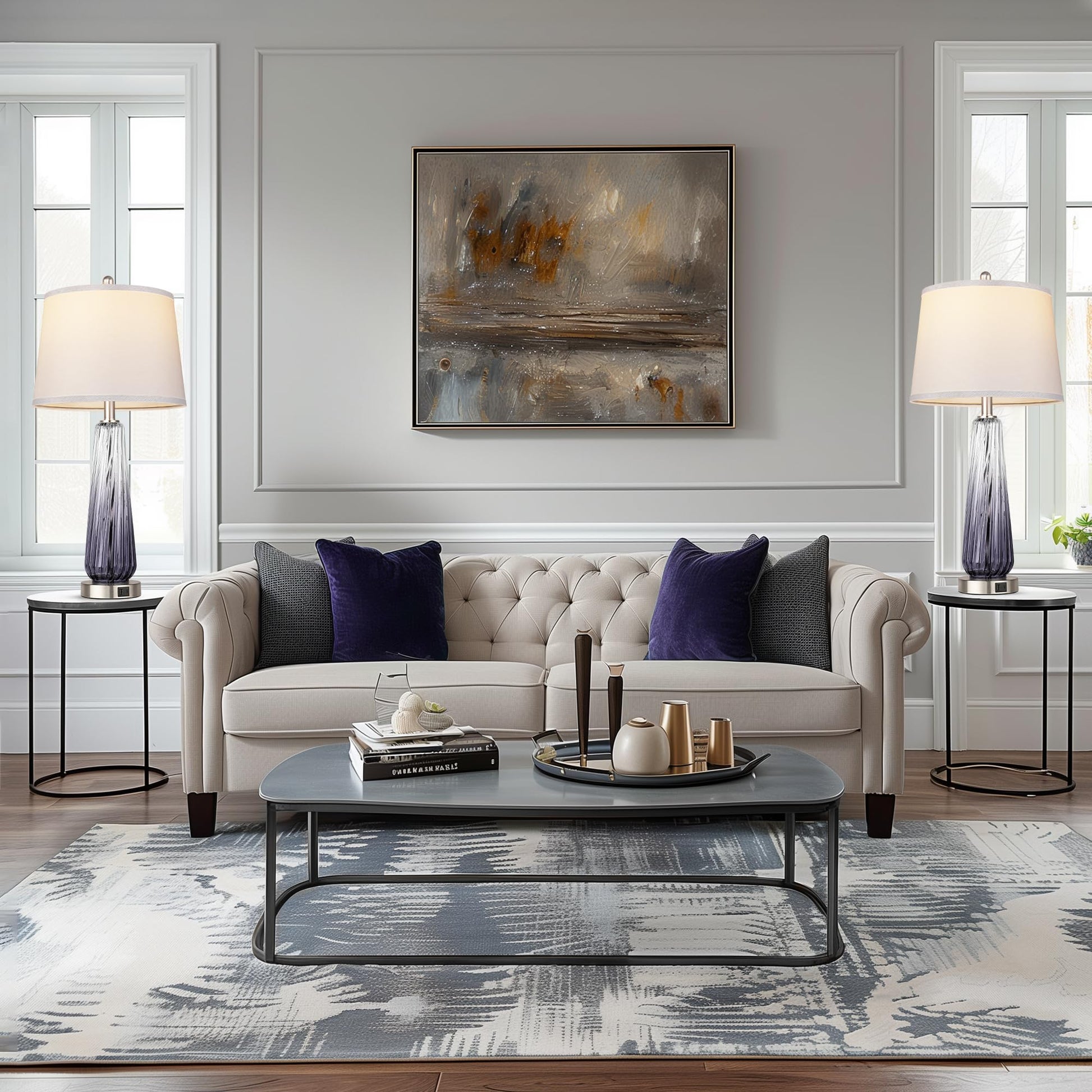 - Aesthetic decoration: the smoke grey bedroom lamp set of 2 consists of high-quality glass material and white fabric drum shade that are perfectly combined with the warm tone of the lamp’s illuminated, creating a comfortable environment to protect your eyes. Whether resting on your nightstands, set in the living room or tucked into your favorite reading nook, this set of table lamps is a chic addition to any aesthetic
