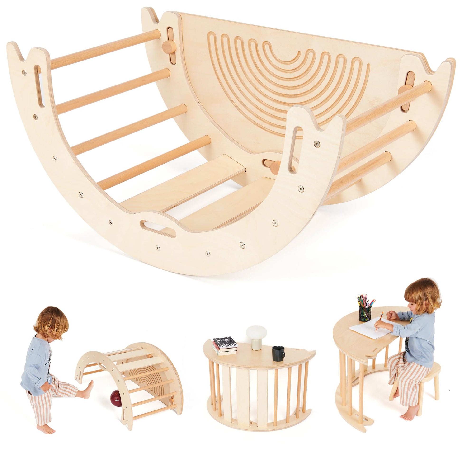 GROWGO Climbing Arch for Toddlers, Multiuse Montessori Climber, Toddler Rocker, Wooden Balance Board, Toy Storage, Easy to Assemble Play Gym - Detailed Guide Included, Perfect for Active Play