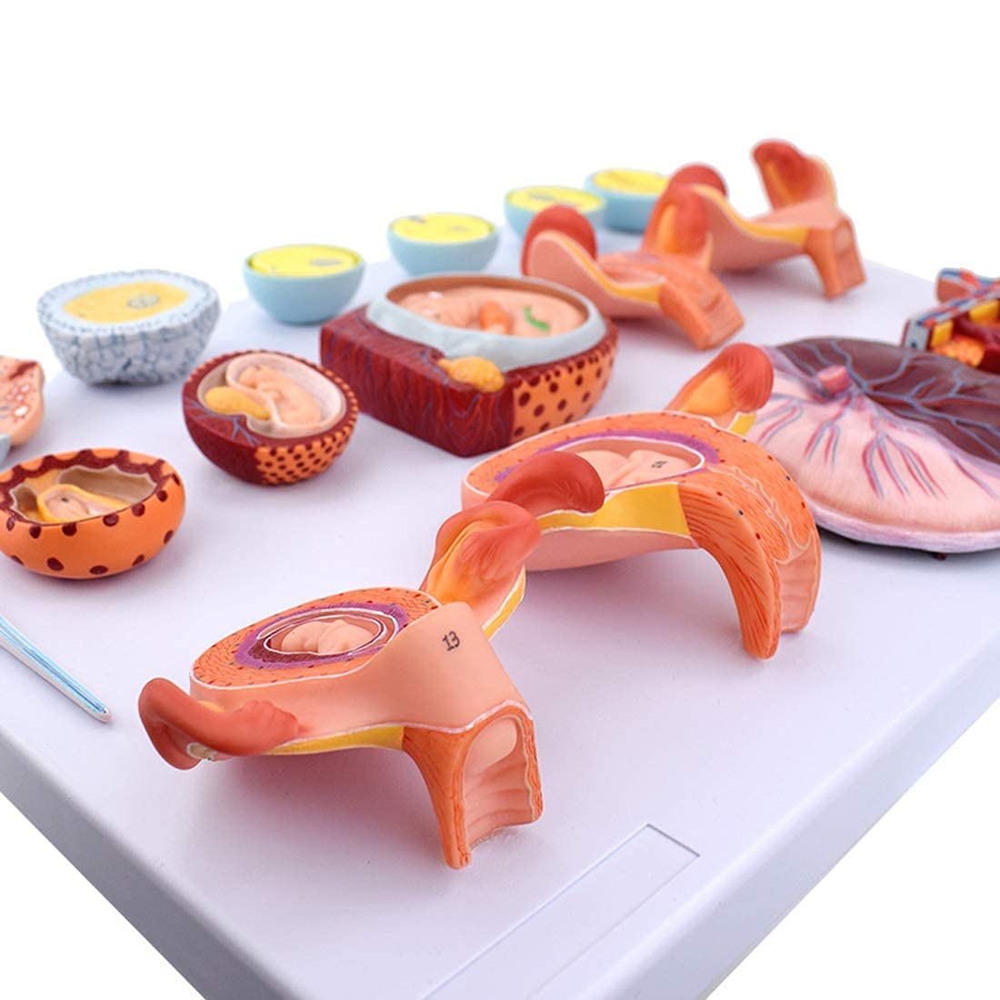 - The model consists of 16 parts including the rough, ovary, egg, fertilized egg development process, blastoderm, 2-9 weeks embryo, and fetal and placenta in March etc.
