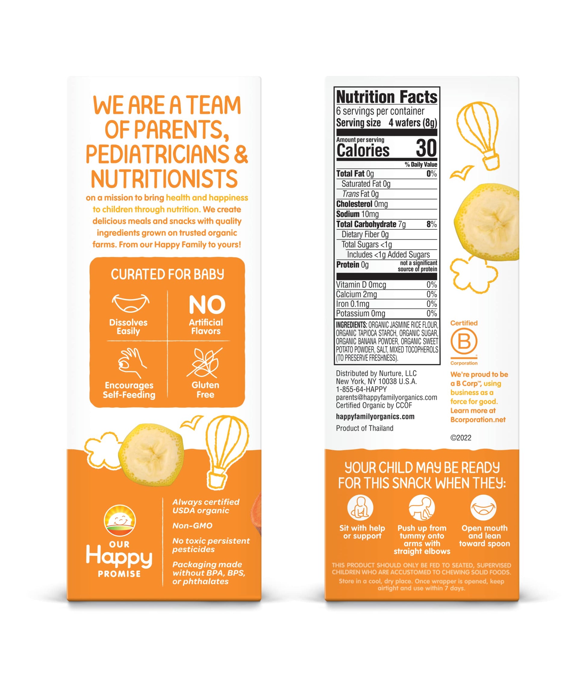 Happy Baby Organics Baby Snacks, Gentle Teething Wafers, Gluten Free & Vegan, Sweet Potato & Banana, 12 Count (Pack of 6)