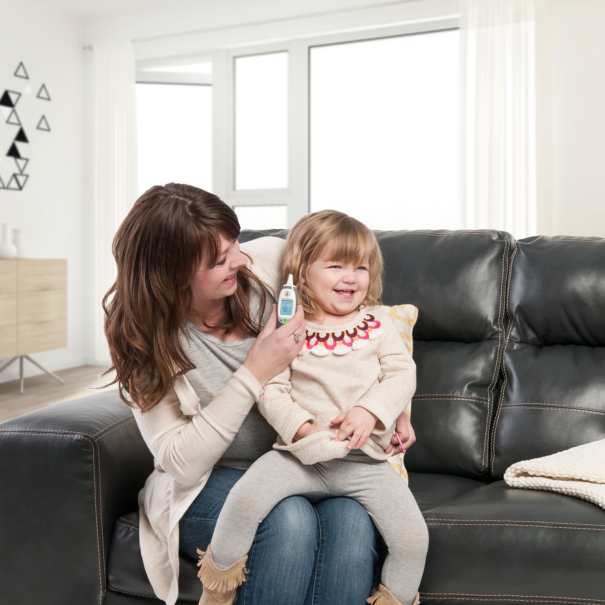 - MEASURES EAR AND AMBIENT (AIR) TEMPERATURES. This sleek thermometer includes two measurement modes for greater versatility.