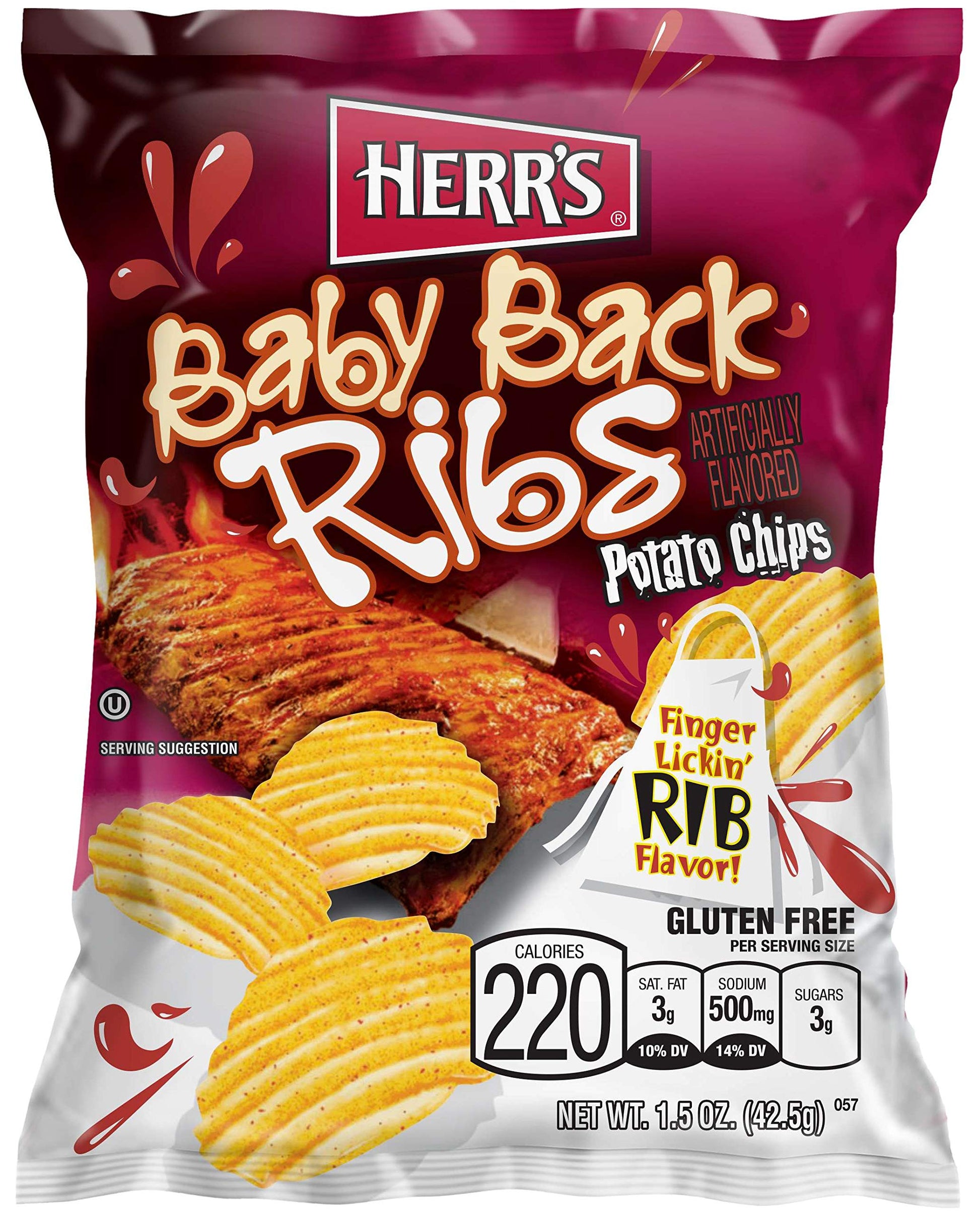 Herr Foods Baby Back Ribs Potato Chips, 1.5 Ounce -- 30 per case.