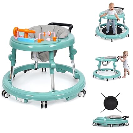 - [9 gear height adjustment & Improved adjustment button]: Our baby walkers for boys and girls have 9 gear adjustment modes, including 5 gear adjustment for the body and 4 gear adjustment for the seat. Adjustable body height: 15.75 inch to 18.5inch. Our baby walker improved adjustment button, only need to push, you can adjust the height. Adjustable seat cushions can provide your baby with extra support and a comfortable tilt.