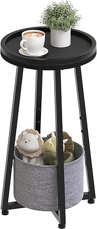Small Round Side Table, 2-Tier Round Sofa End Table