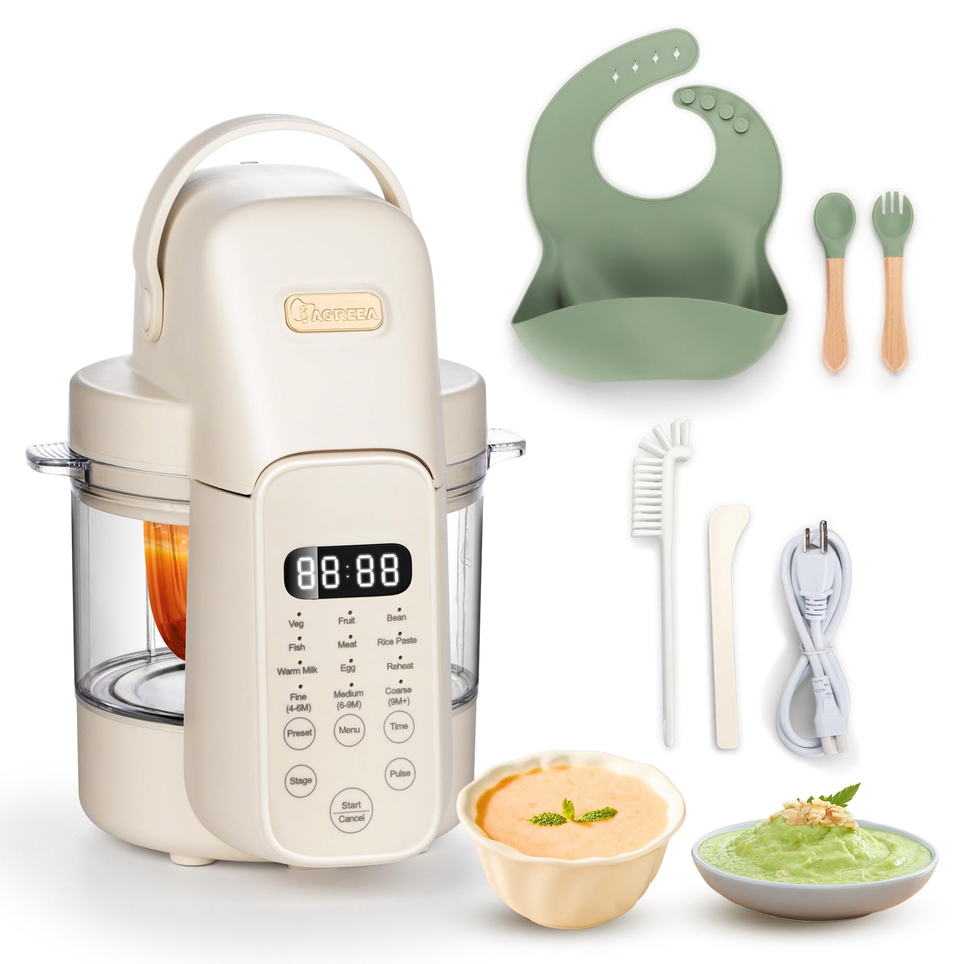 - 9-IN-1 MULTIFUNCTION BABY FOOD MAKER – Steams, blends, grinds, stirs, and more to prepare vegetables, fruits, meat, fish, rice porridge, and hot milk. One machine meets all your baby’s feeding needs.