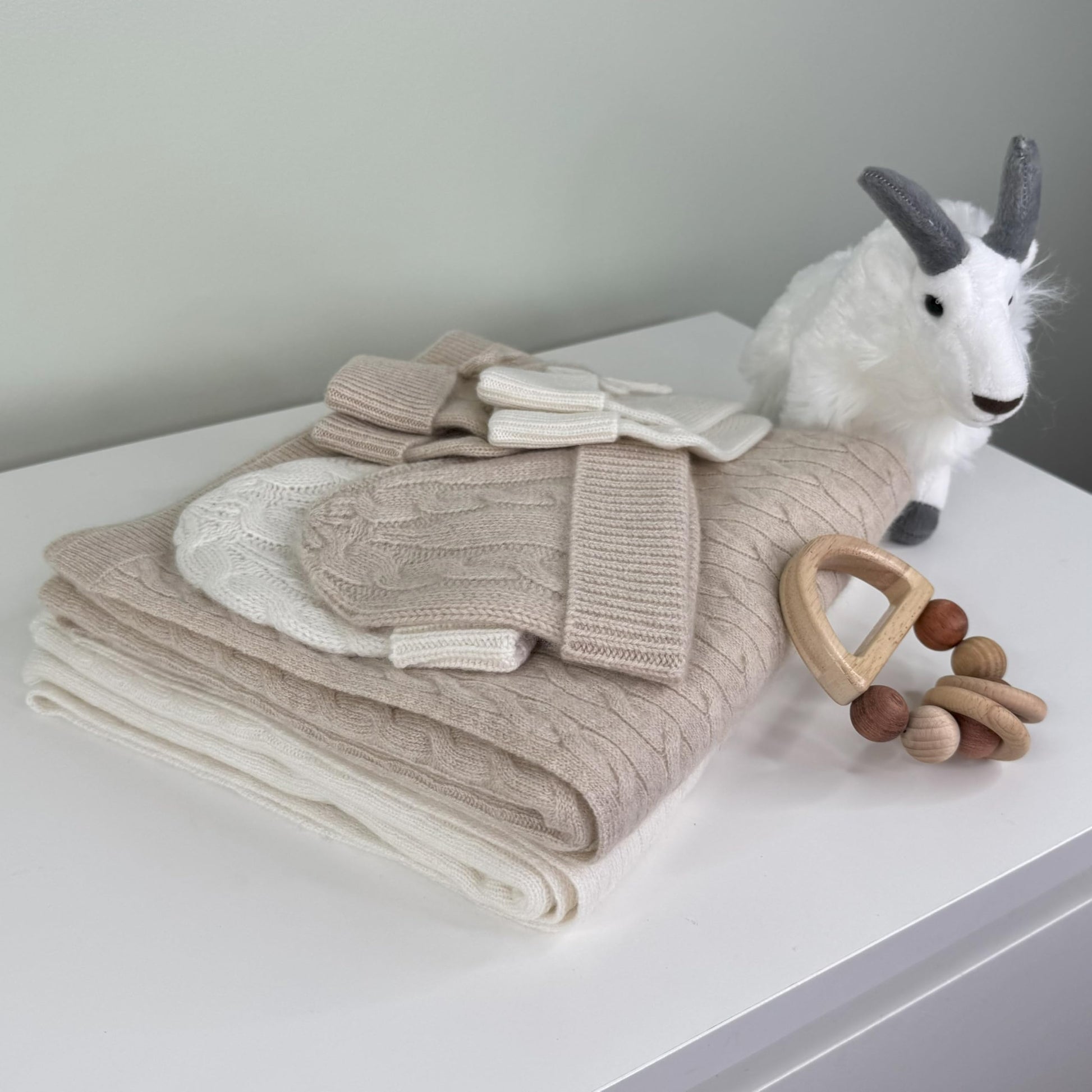 100% Cashmere Baby Blanket, Beanie and Booties Gift Set Cable