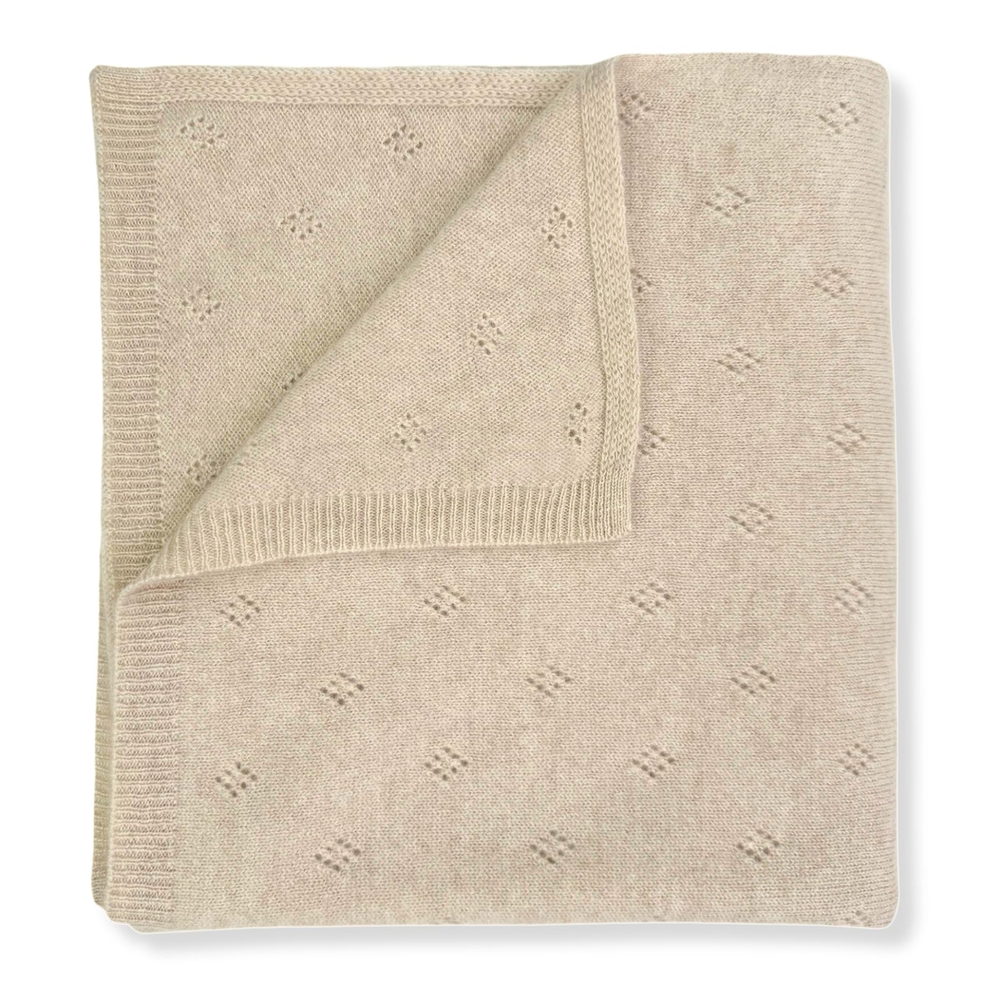 - 100% Cashmere: Crafted from 100% Grade A cashmere sourced from Inner Mongolia, this pointelle cashmere blanket offers softness and warmth that's gentle on delicate skin.
