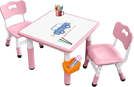 - 𝑫𝑶𝑶𝑫𝑳𝑬-𝑭𝑹𝑰𝑬𝑵𝑫𝑳𝒀 𝑺𝑼𝑹𝑭𝑨𝑪𝑬: Get Creative! Our kids' table and 2-chair set includes easy-to-follow assembly instructions. The wipeable tabletop allows kids to unleash their creativity using it as a canvas with watercolor pens, sparking their imagination. Besides, maintaining a clean space is super easy, ensuring a mess-free creative environment!