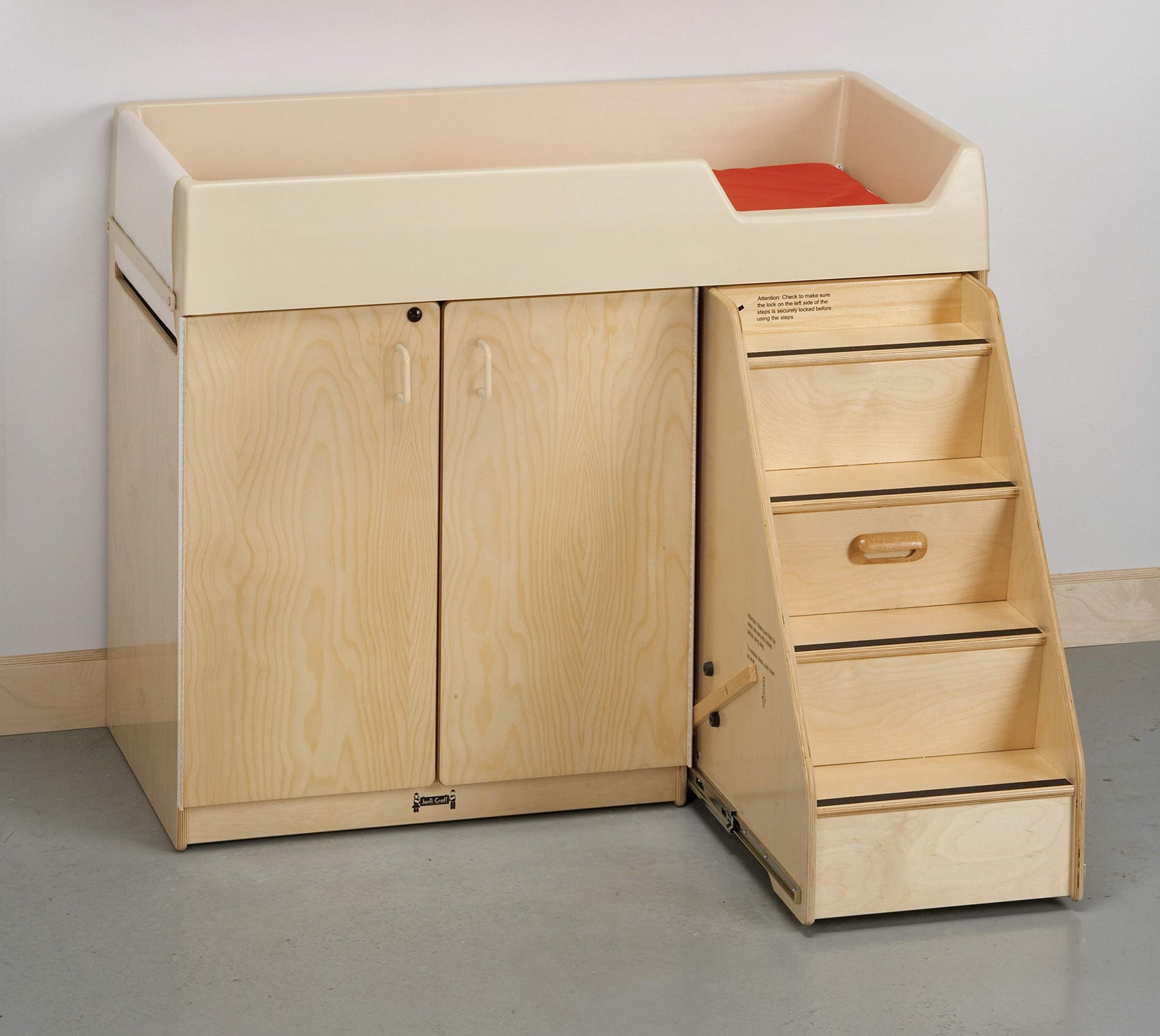 - PROTECTION ON 4 SIDES - Jonti-Craft's Diaper Changer with Stairs will put your mind at ease. It has 4 raised sides that protect children as they're having their diaper changed. It's perfect for your home, daycare, nursery, school, and more.