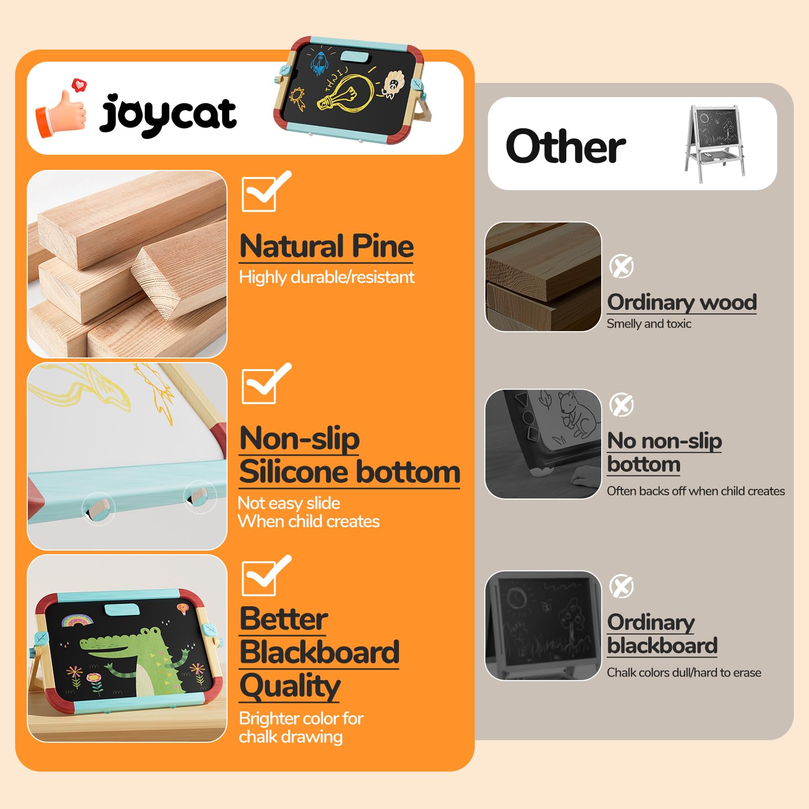 Joycat Wooden Double-Sided Magnetic Tabletop Easel For Kids, No Assembly Needed, 360° Smooth Adjustable Tilt & Anti-Slip Base,3-in-1 Kids Art Easel & station with 65 Accessories,Ideal Gift for Ages 3+