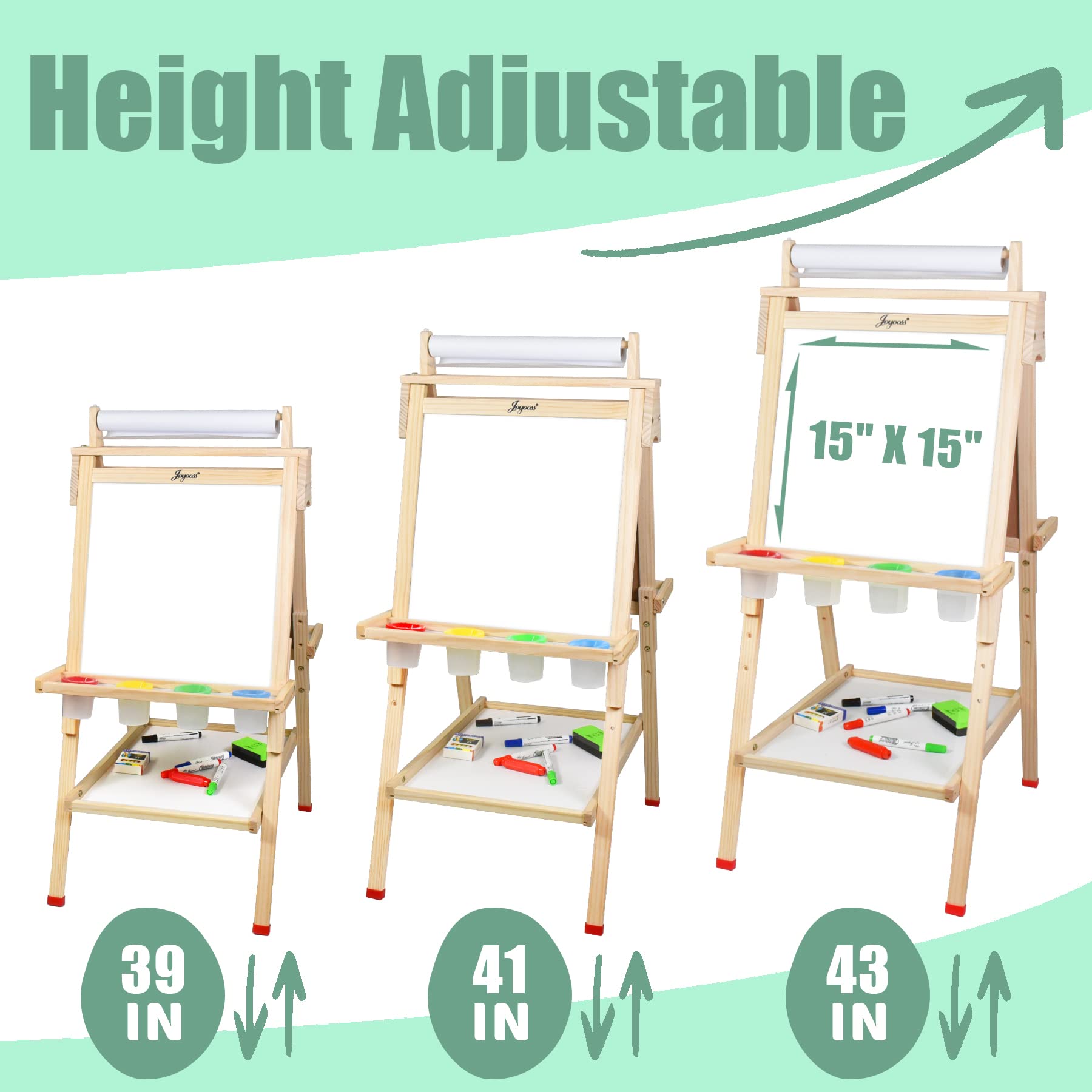 Joyooss Art Easel for Kids with Double-Sided Magnetic, Wooden Standing Kids Easel with Dry Erase Whiteboard & Chalkboard, Height Adjustable Children Easel with Paper Roll, Bonus Toddler Art Supplies