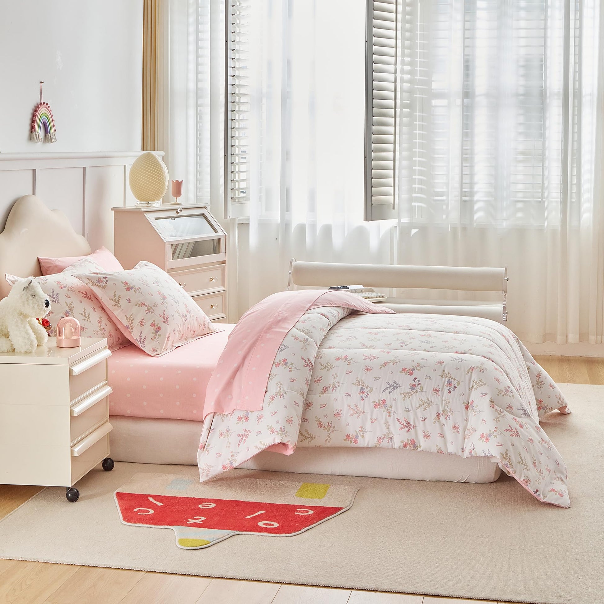 6pcs Cotton Comforter Sheet Set for Girls, Twin Size Bed in a Bag