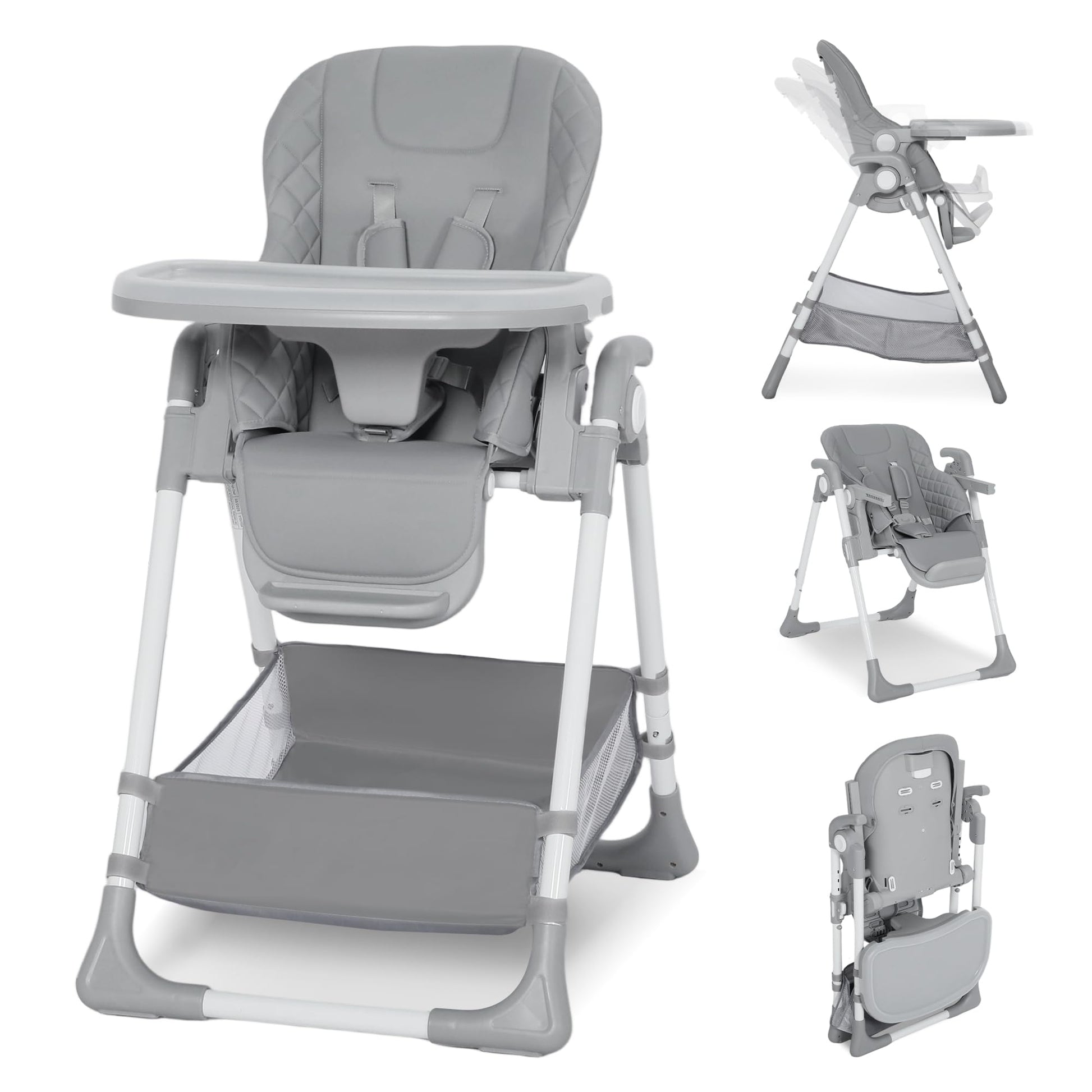 - Simple To Install & Fold: The high chair for babies and toddlers is easy to put together and fold; Compact fold that stands on its own; The movable tray can also be placed on the legs of the folding high chair, which is very ideal for easy storage