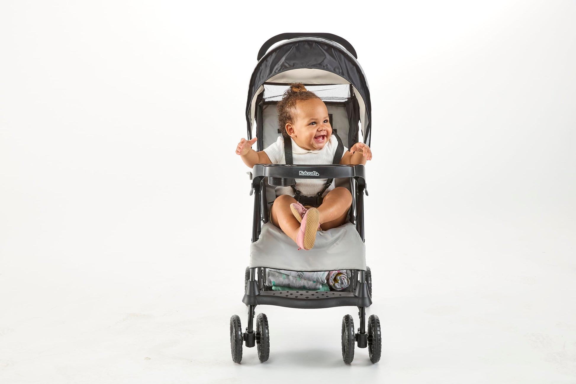 - Spacious Storage & Cup Holders - Equipped with a large, easy-access storage basket for all infants gear, a removable child tray with a drink holder, and a parent tray with two water bottle holders
