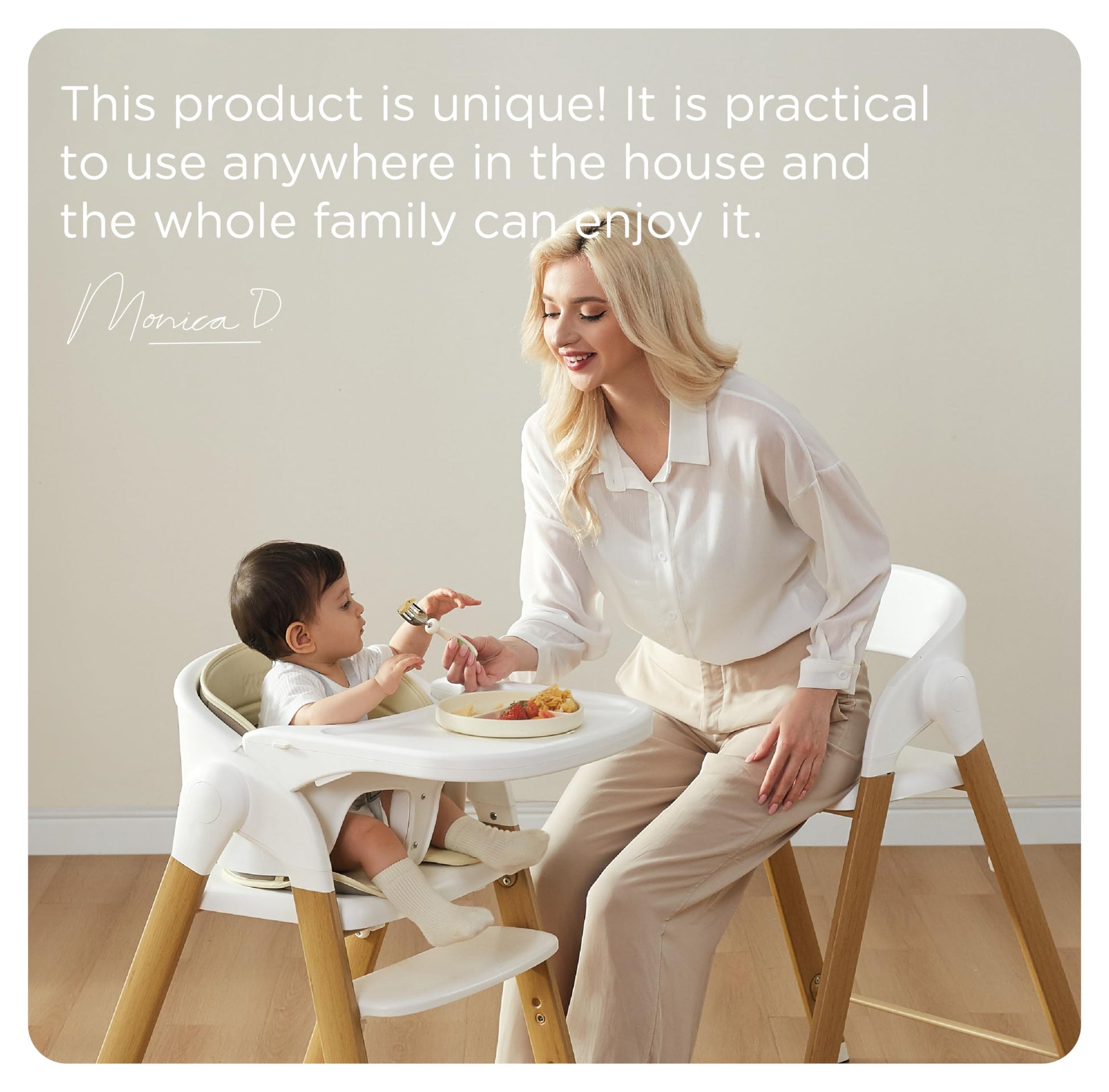 - This high chair can be used as a baby eating chair, game chair, study chair, or even a work chair (remove the tray and seat). Our high chair can perfectly match the growth needs, seamlessly transitioning from newborn to toddler to child to adult.