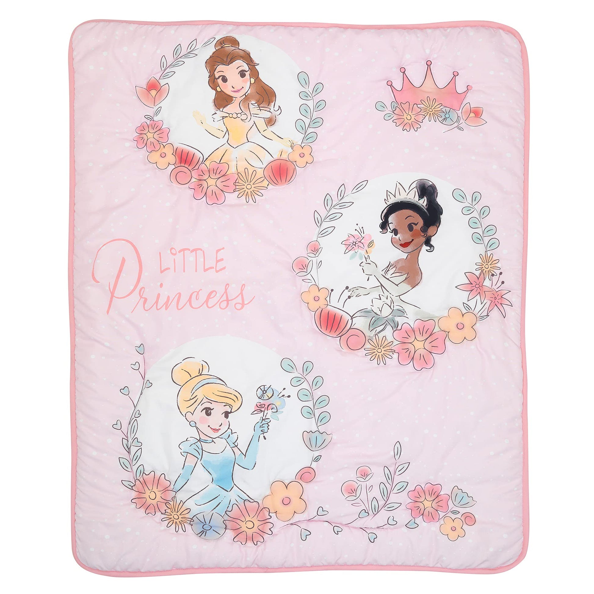 Disney Princesses Nursery Baby Crib Bedding Set, Pink, 3 Count