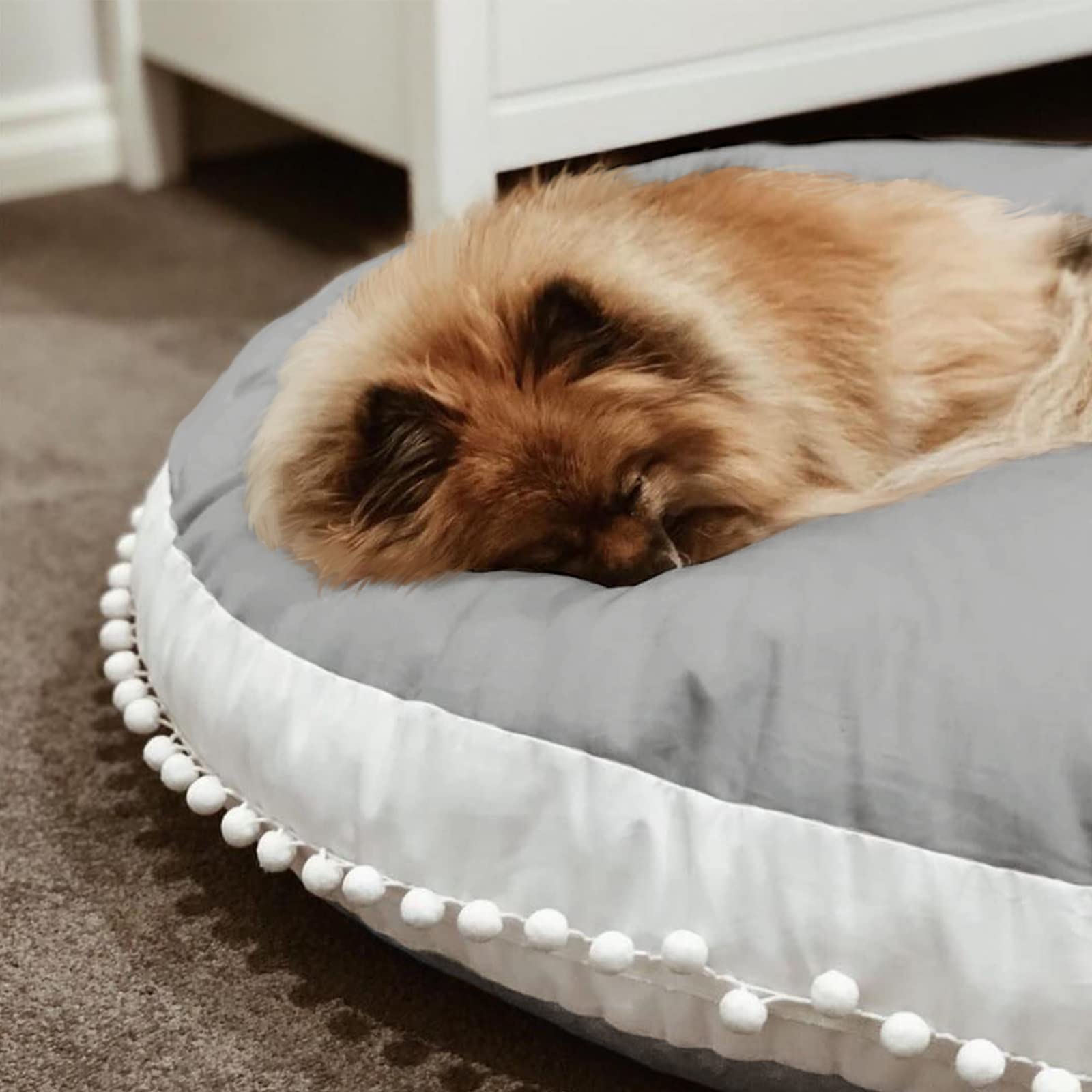 - Big Floor Cushion for Kids: The nursery floor pillow is designed with warm color, many small boho pompoms and a strong stitching, this large kids floor pillow seating is a beautiful child pouf pillow, adults meditation cushion, yoga pad, floor pillow cushion or playing mat, watching TV pad, and is more comfortable and soft than rugs or carpets