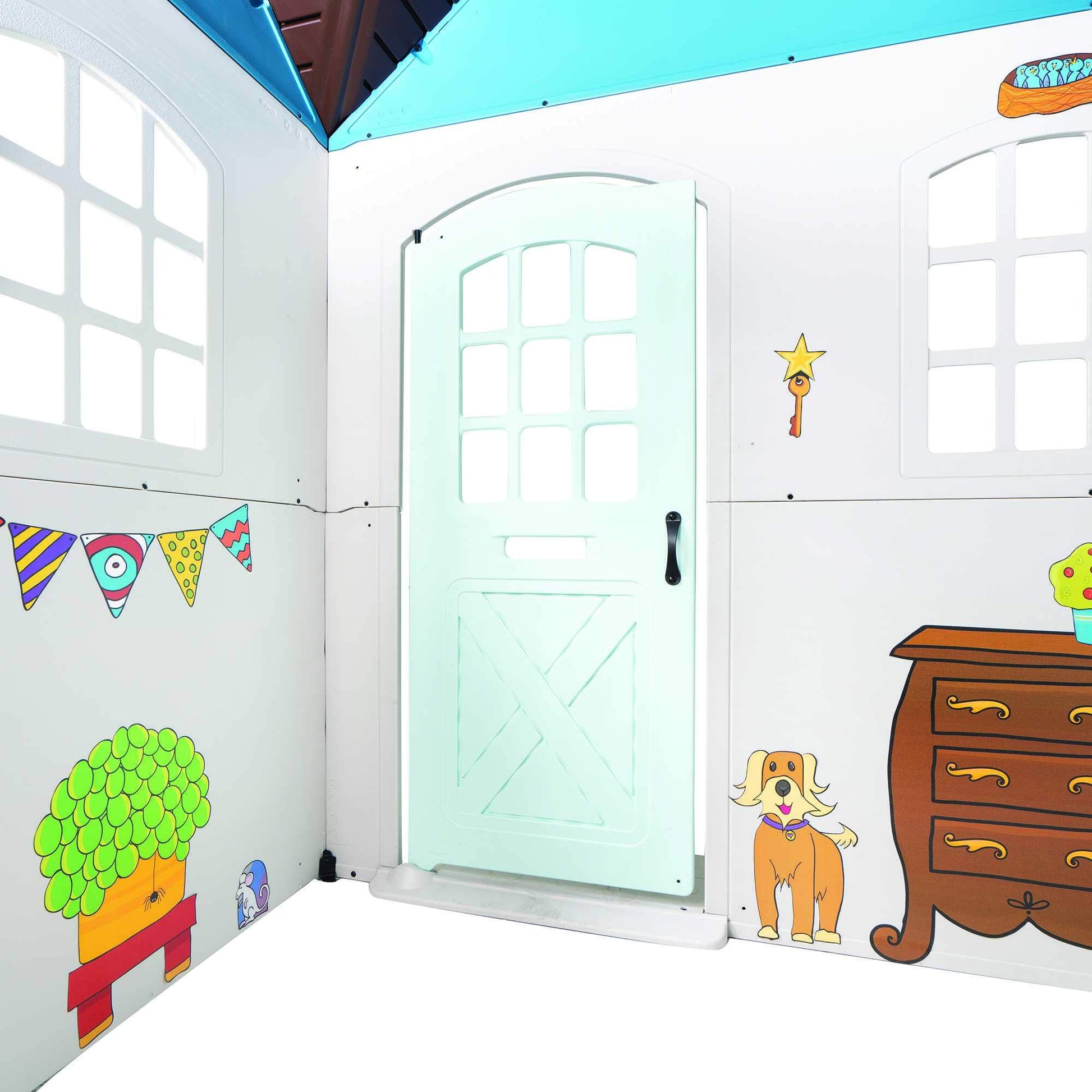 - Reusable stickers: Fun shapes featuring furniture, plants, pets, and more. weather resistant and can be moved around throughout the playhouse