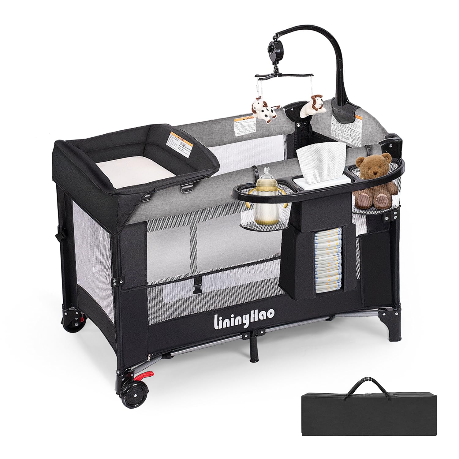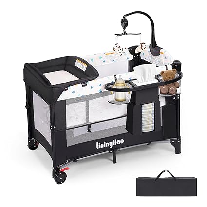 - The lower level is designed to store miscellaneous items and features 2 openings for easy access and retrieval. It also includes a side-expandable storage bag. The entire unit can be quickly folded with a simple pull, saving space and enhancing portability. It comes equipped with a diaper changing station, and the upper bed can be detached to serve as a playpen. The side height is adjustable, allowing it to seamlessly connect with a parent's bed. Suitable for multiple scenarios, it creates a comfortable environment for the child.