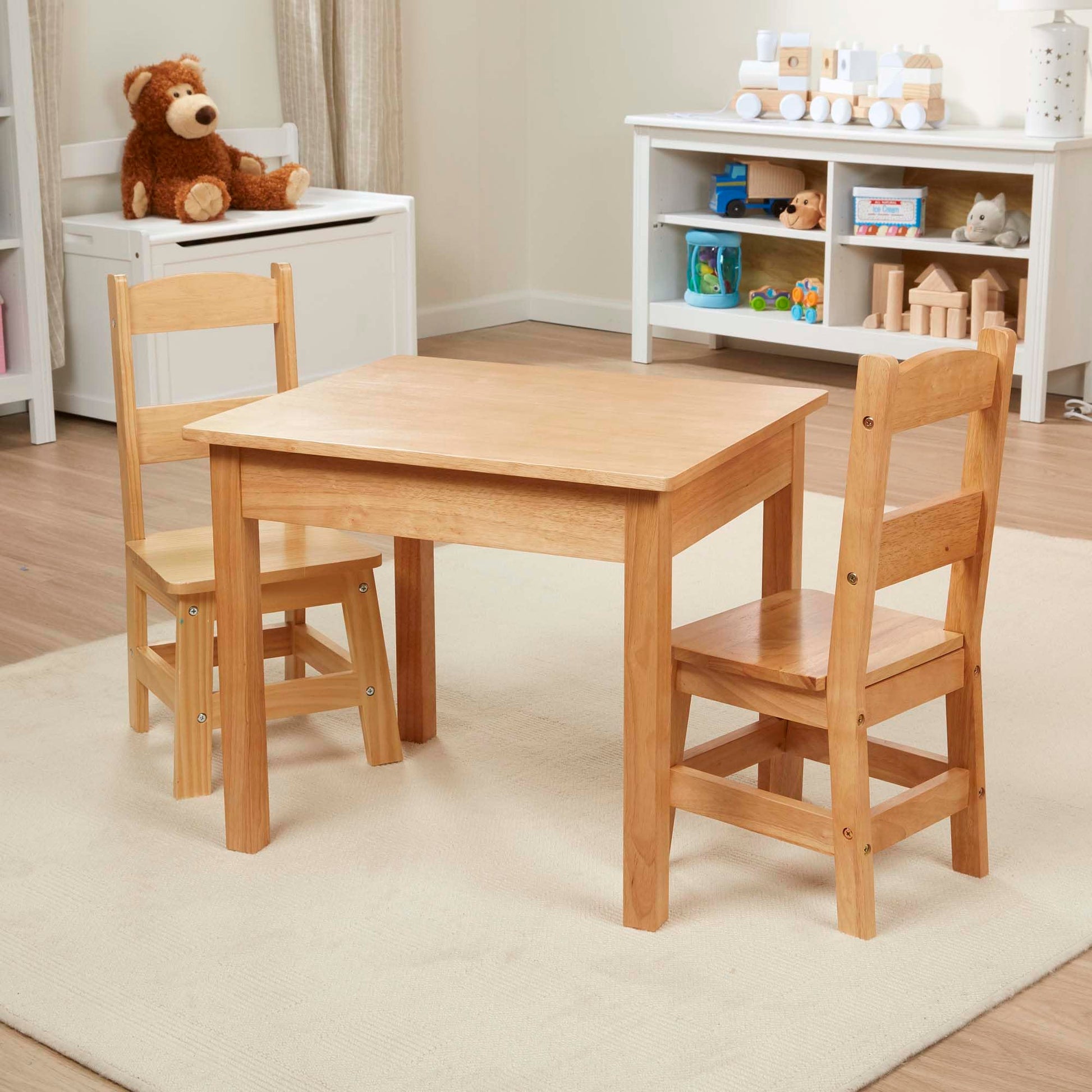 Solid Wood Table and 2 Chairs Set - Light Finish Furniture for Playroom
