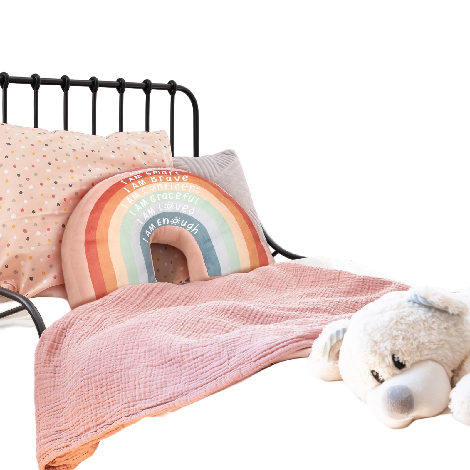 - Embrace the Vibrancy of Rainbow Hues with Our Boho Pillow: expertly designed in a captivating rainbow shape, this rainbow pillow also incorporates bohemian design elements that add a lively touch to your space; With uplifting affirmations such as [I AM Brave], [I AM Kind], [I AM Smart] decorated on it, this pillow serves not only as a comfortable touchpoint but a tangible source of positivity