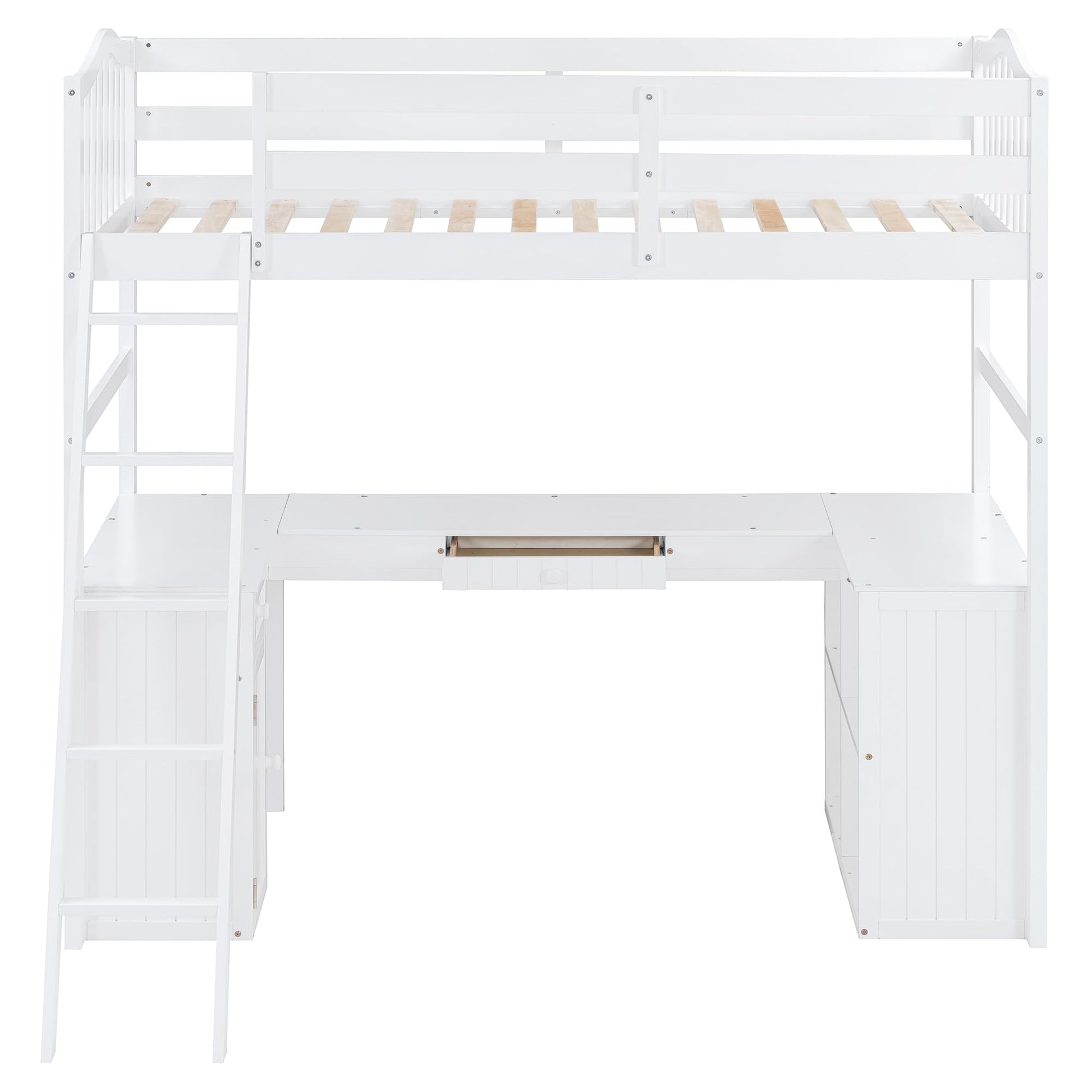 Twin Size Loft Bed with Desk, Wooden Loft Bed Frame with Drawers