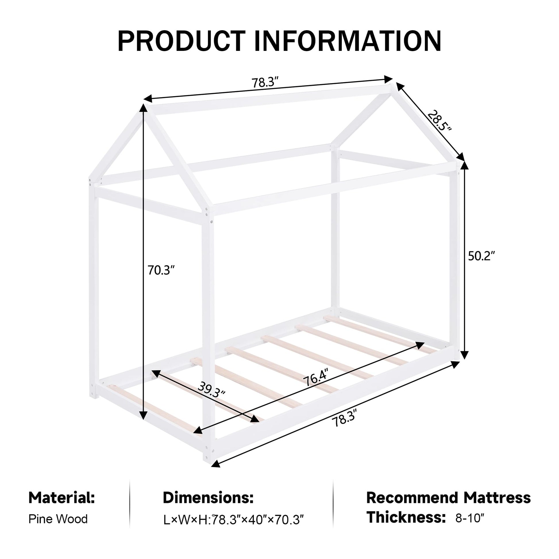 Merax Wood House Bed,Floor Bed with Wood Slats,No Box Spring Needed,Twin Size, White