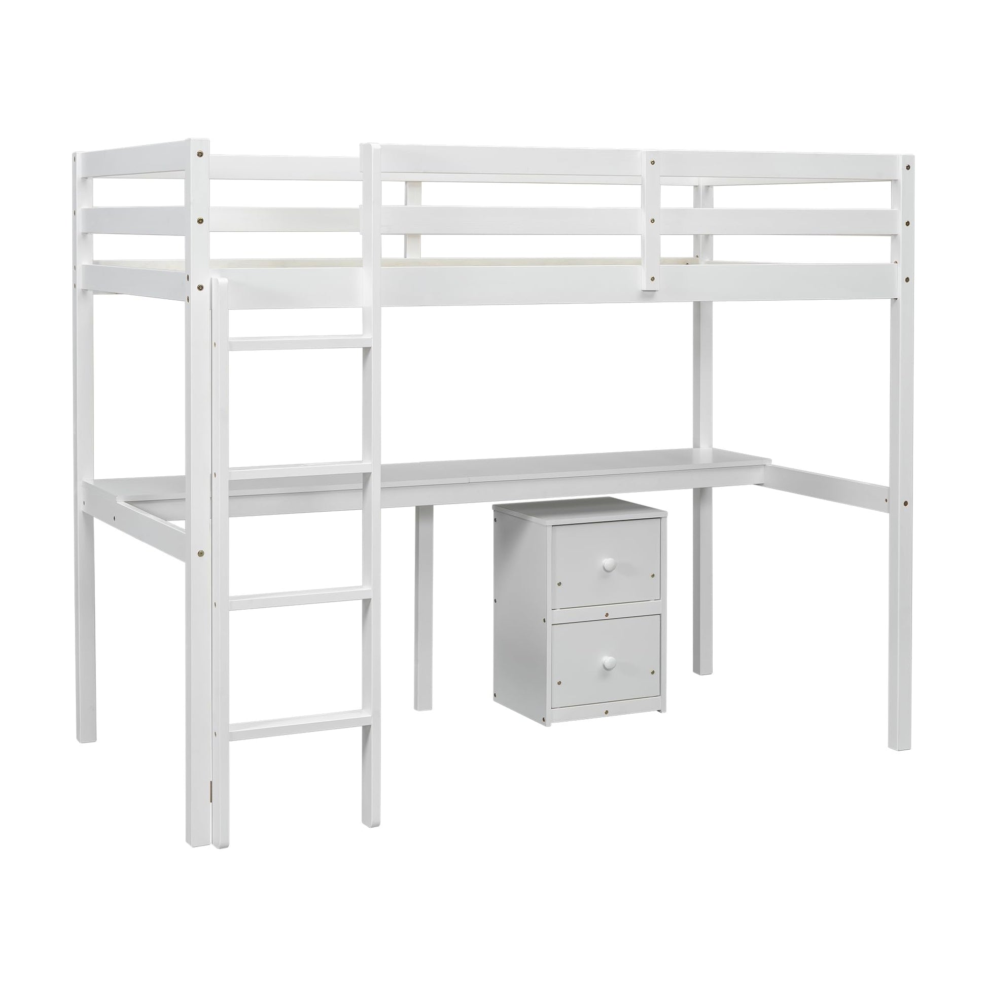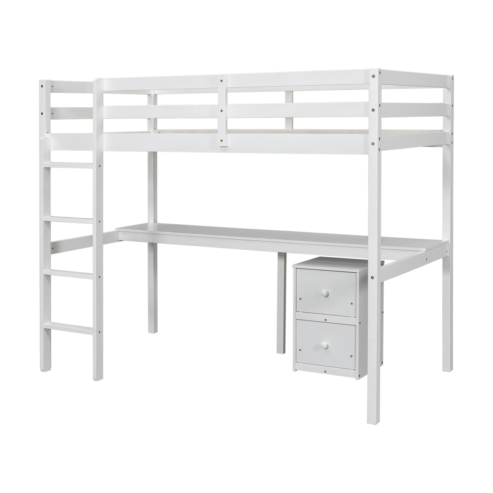- Comprehensive Design: The feature of this loft bed not only ensures better sturdy construction, but also reduce safety concerns, the desk offering the kids a quiet, cozy place for reading and writing. In addition, the built-in ladder against the upper bunk is designed with a safe and wider width to provide more spacious steps and solid support, making it easier for you to climb up and down the ladder