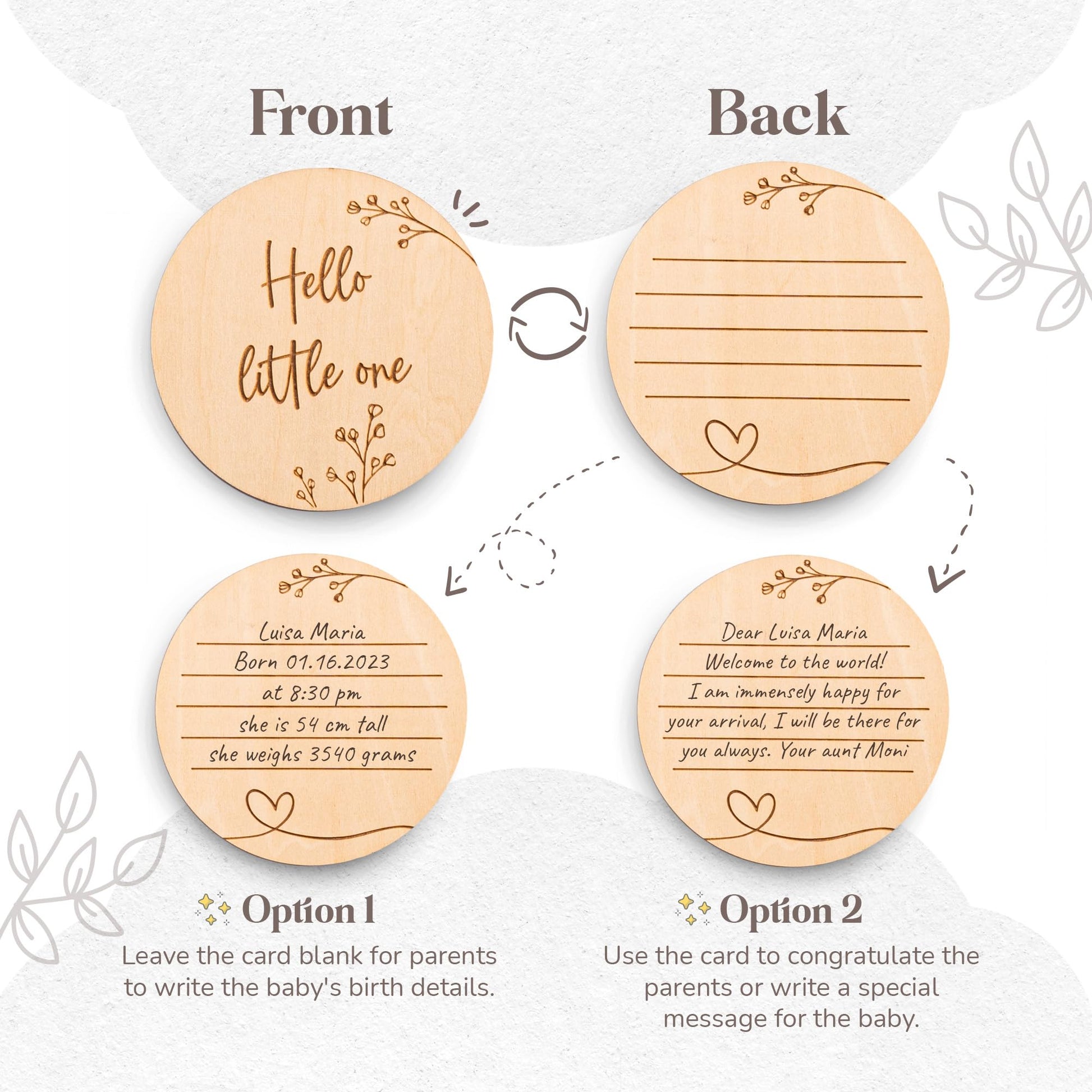 - [PERFECT 4 PIECES GIFT BOX]- (1) Muslin Lovey Blanket 12x12in w/ cute pattern in the rabbit ears and hand-sewn nose detail, (2) size-adjustable muslin cotton bib, can be used on both sides, (3) wooden teether and (4) wooden baby announcement sign.