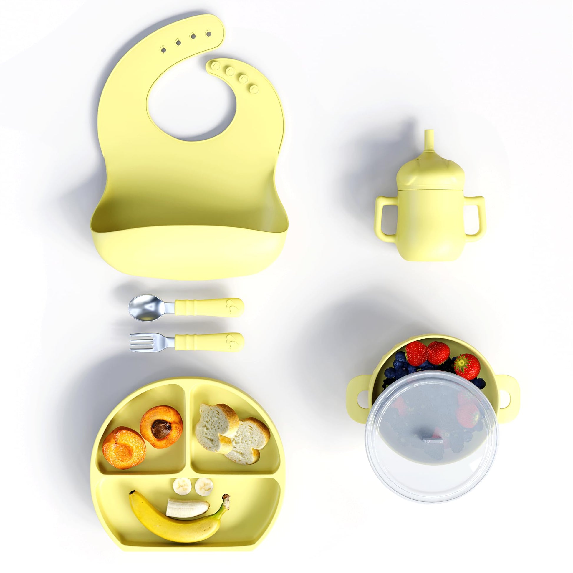 - MESS-FREE MEALTIMES: Our toddler plates and bowls set come with a slip-resistant suction base that stays put, no matter how lively your little one is during mealtime. And the sippy cup for 6+ month old? It's designed with a lid to avoid any spills