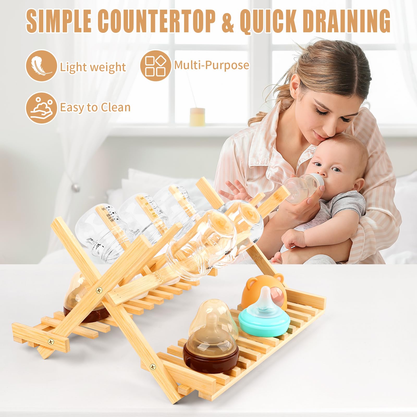 Baby Bottle Drying Rack, Foldable Bamboo Bottle Rack Dryer Space Saving