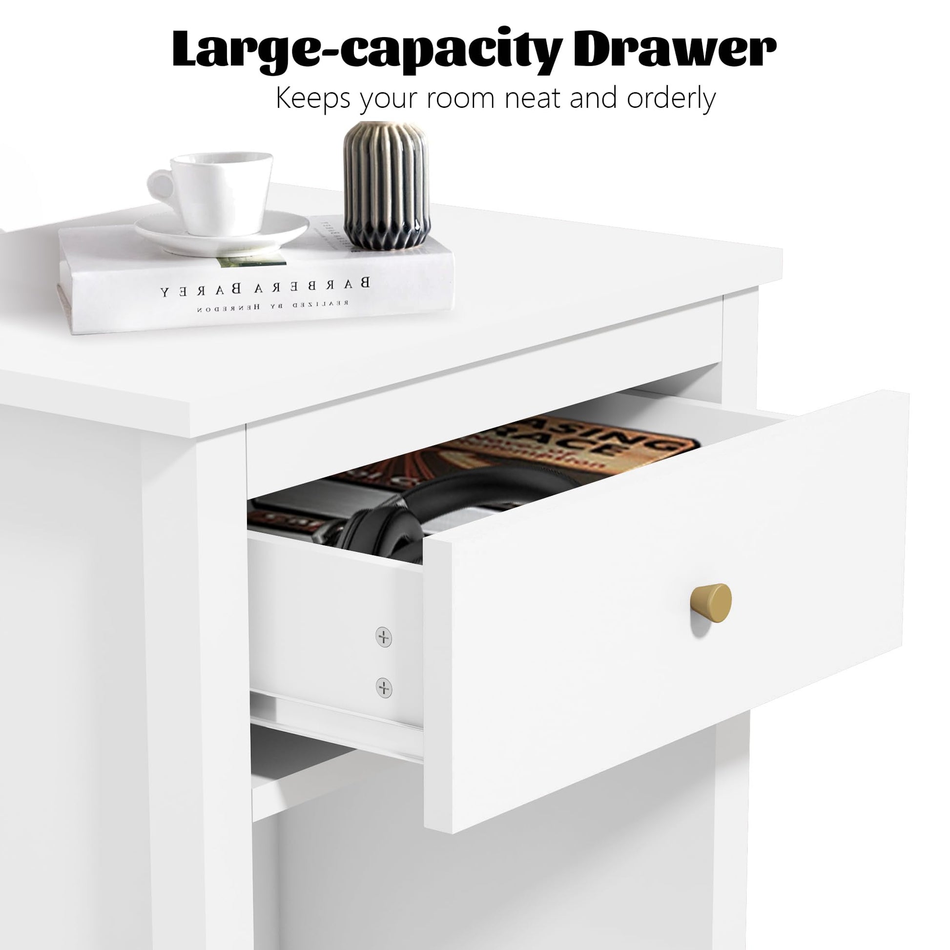 Modern Nightstand, Kids Nightstand with One Drawer, Bedside Table for Boys and Girls, Toddler Night Stand for Living Room, Bedroom, White