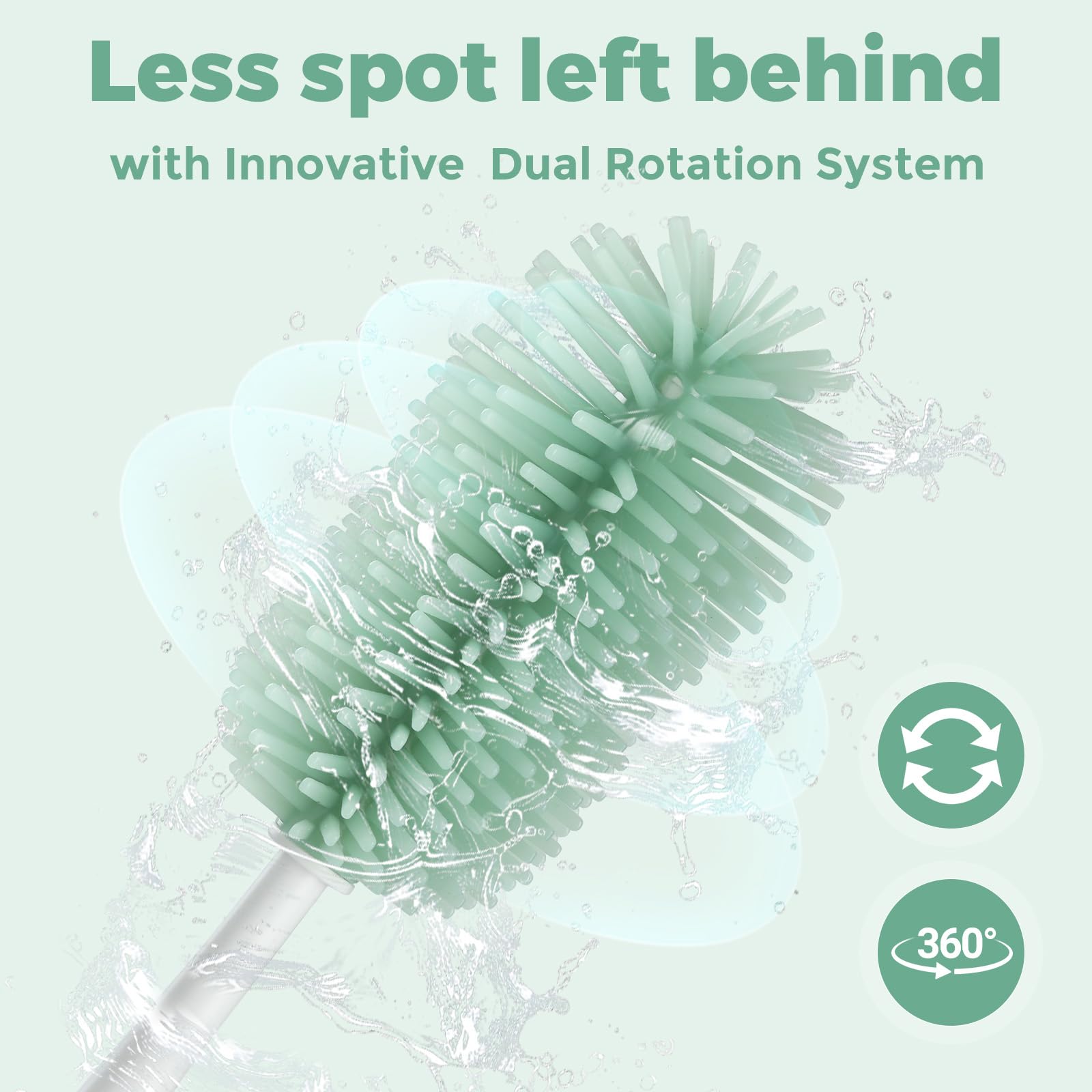 - Innovative Dual Rotation System:With our unique dual-rotation design, you'll never have to worry about missing hard-to-clean spots again. It avoids dead corners when cleaning in one direction, ensuring cleaning efficiency. Reduces bottle scratches by 50% vs single-direction brushes, protecting bottle surfaces and extending brush life, so you can say goodbye to frustrating cleaning experiences.