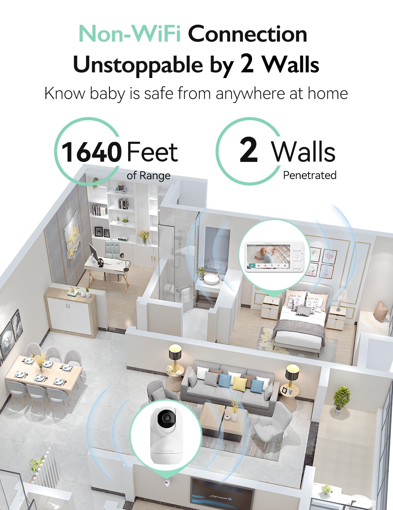 - 【Reliable Signal Without WiFi】Enjoy a strong and secure connection up to 1640 feet (500 meters) through multiple obstacles with the non-WiFi baby monitor. Featuring an FHSS closed-circuit system, your family's privacy is protected, as only you can access the feed. No WiFi needed, keeping your connection safe and secure.