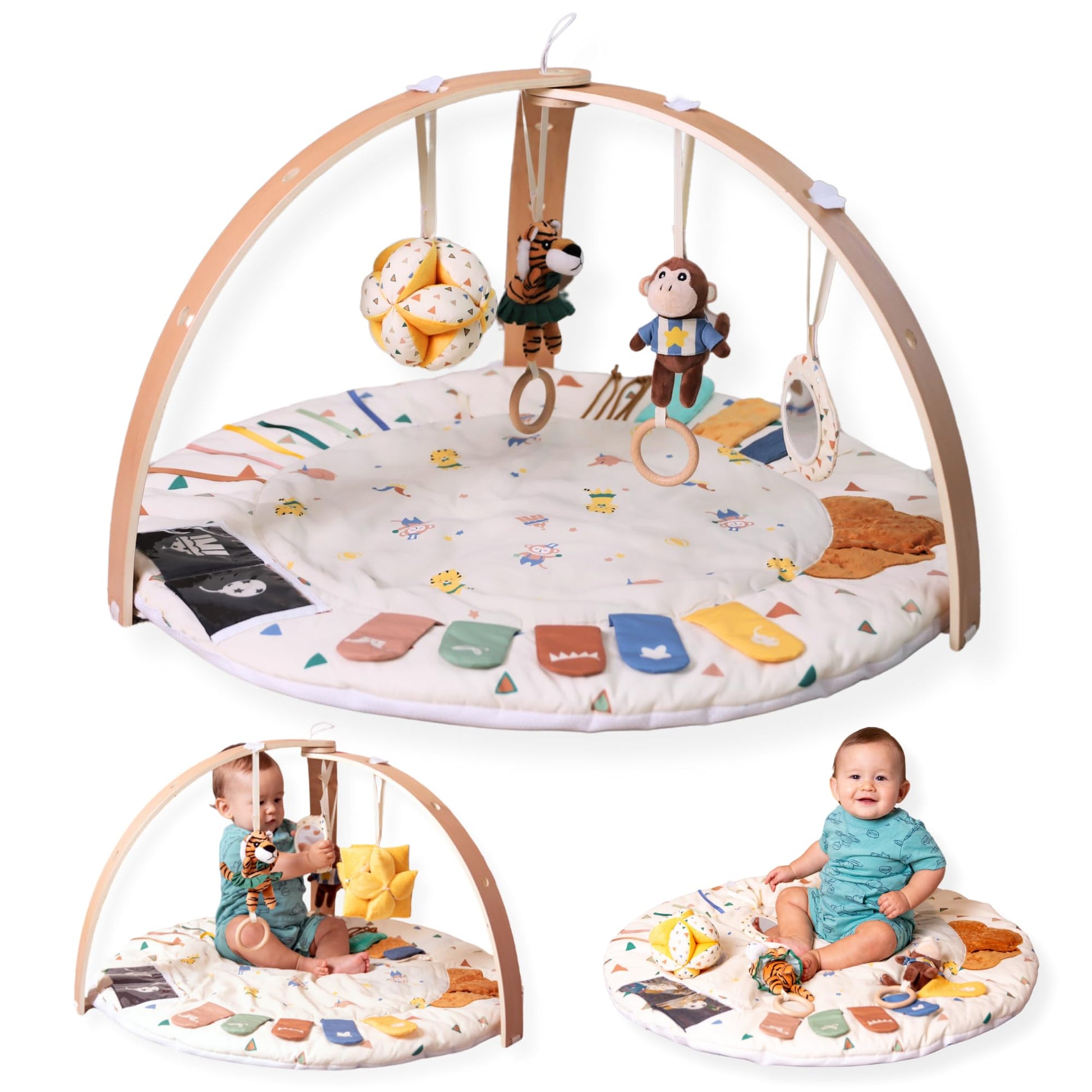 - Versatile Baby Gym for Endless Fun: The Baby Gym Play Mat offers a spacious area for tummy time, sensory exploration, and games. This baby play gym combines a tummy time mat, play mat, and activity gym. Perfect for newborns and infants 0-6 months to toddlers, this great play mat for babies 6-12 months ensures well-rounded development. It evolves with your baby from head-up time to crawling and beyond.