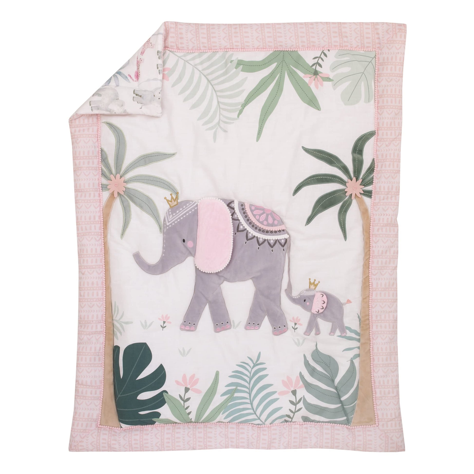 Tropical Princess Elephant/Jungle Pink and Green 4 Piece Crib Bedding Set