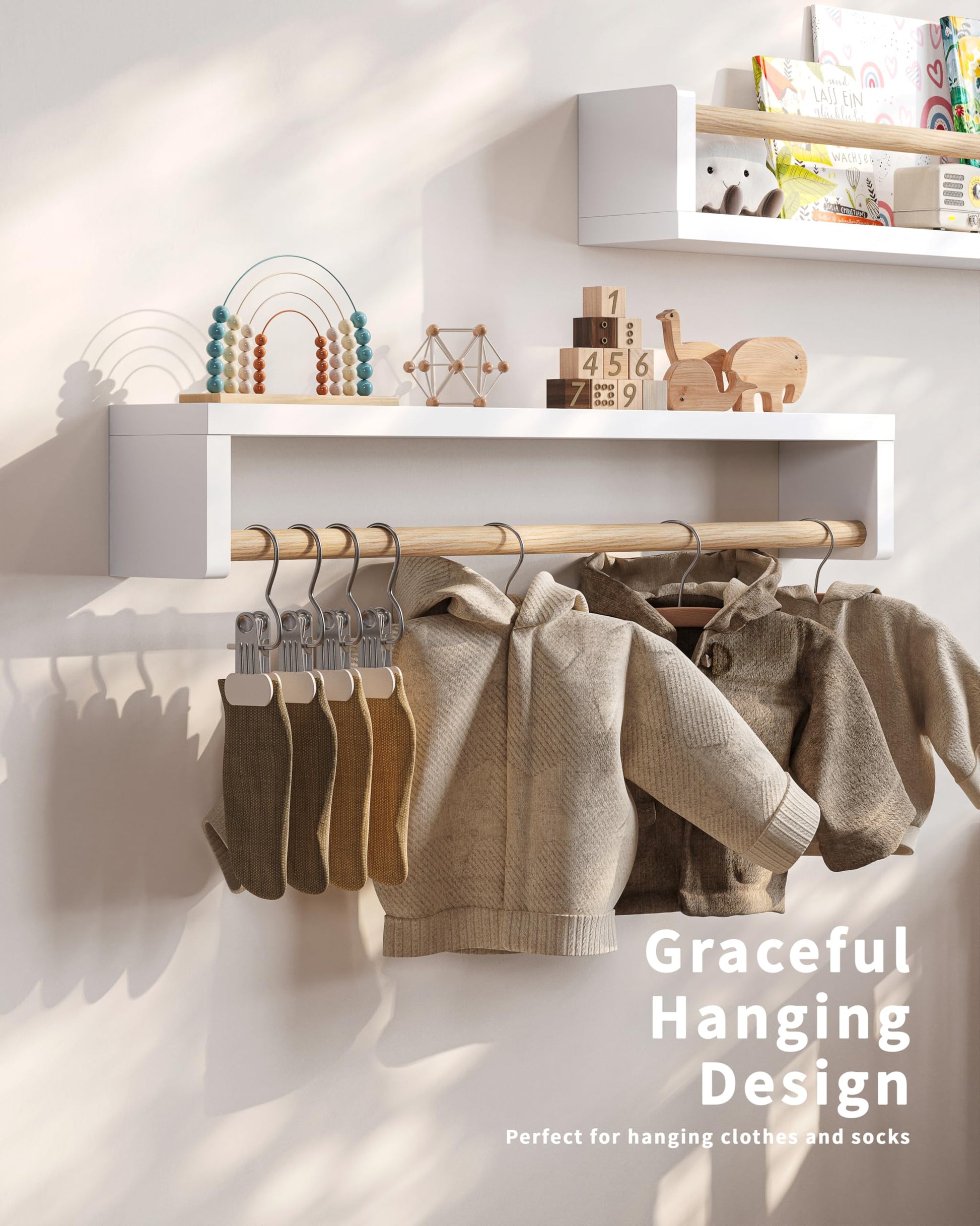 - Sturdy & Safe Design: Made from high-quality materials, these shelves are durable and designed with child safety in mind, offering secure storage for your little one's belongings.